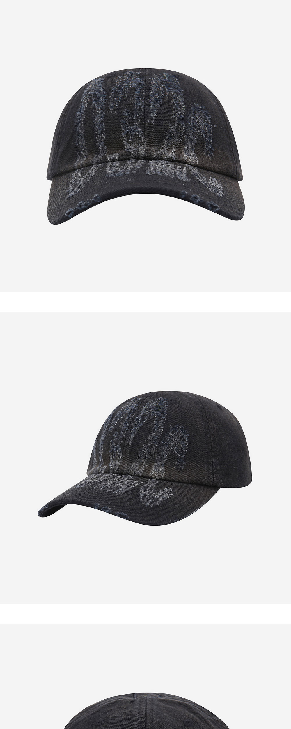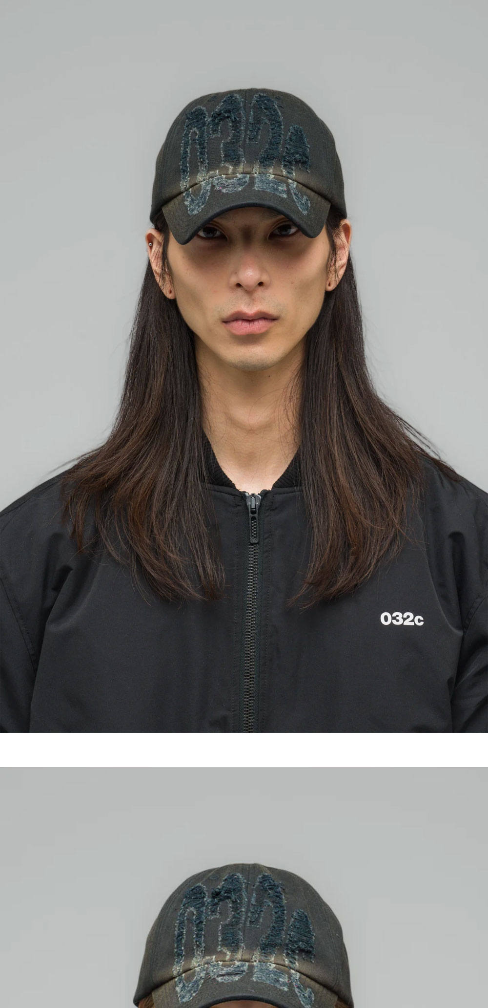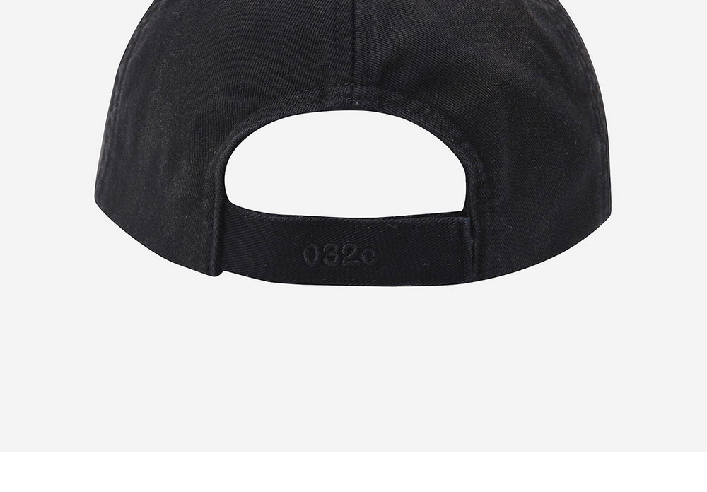 벨크로 클로저가 달린 6-패널 디자인의 032C 캐리오버 캡 모자입니다. - 레이저 디스트레스드 032c 로고 - 헤비 가먼트 워시 및 얼룩 처리 - 클래식 미드웨이트 코튼 트윌 소재
