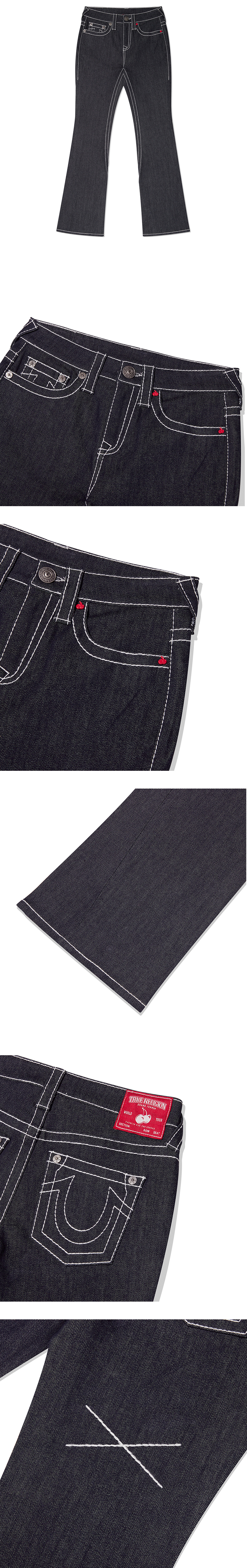 [상품 설명] • 트루릴리젼 ORIGINAL 미드라이즈 부츠컷 팬츠 • 생지 원단 활용 • 트루릴리젼 ORIGINAL BIG T STITCH 적용 (WHITE) • 트루릴리젼 ORIGINAL 로고 캔톤/리벳 디테일 • 트위스트 절개 패턴 • 전면부 좌측 사이드 포켓 키르시 체리 리벳 포인트 • 후면부 우측 트루릴리젼 시그니처 BIG T - X 스티치 • 후면부 상단 콜라보 직조라벨 포인트
