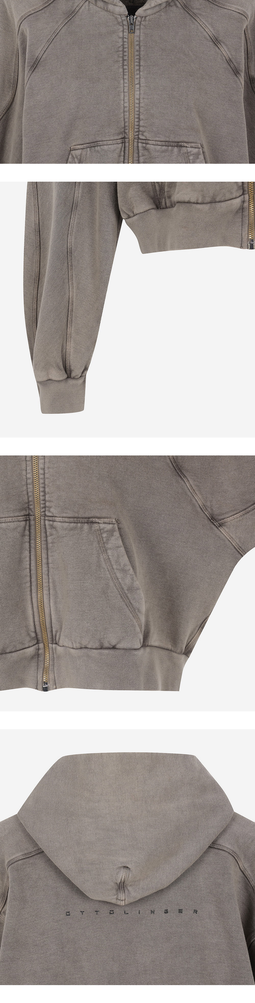 빈티지한 워싱이 돋보이는 오토링거의 워시드 크롭 집업 후디입니다. 드랍 숄더 형태의 오버사이즈 소매가 특징입니다. - 빈티지한 워싱 - 드랍 숄더 - 크롭 기장 - 오버사이즈 소매 * 모델 스펙 : 178cm / 착용 사이즈 : XS