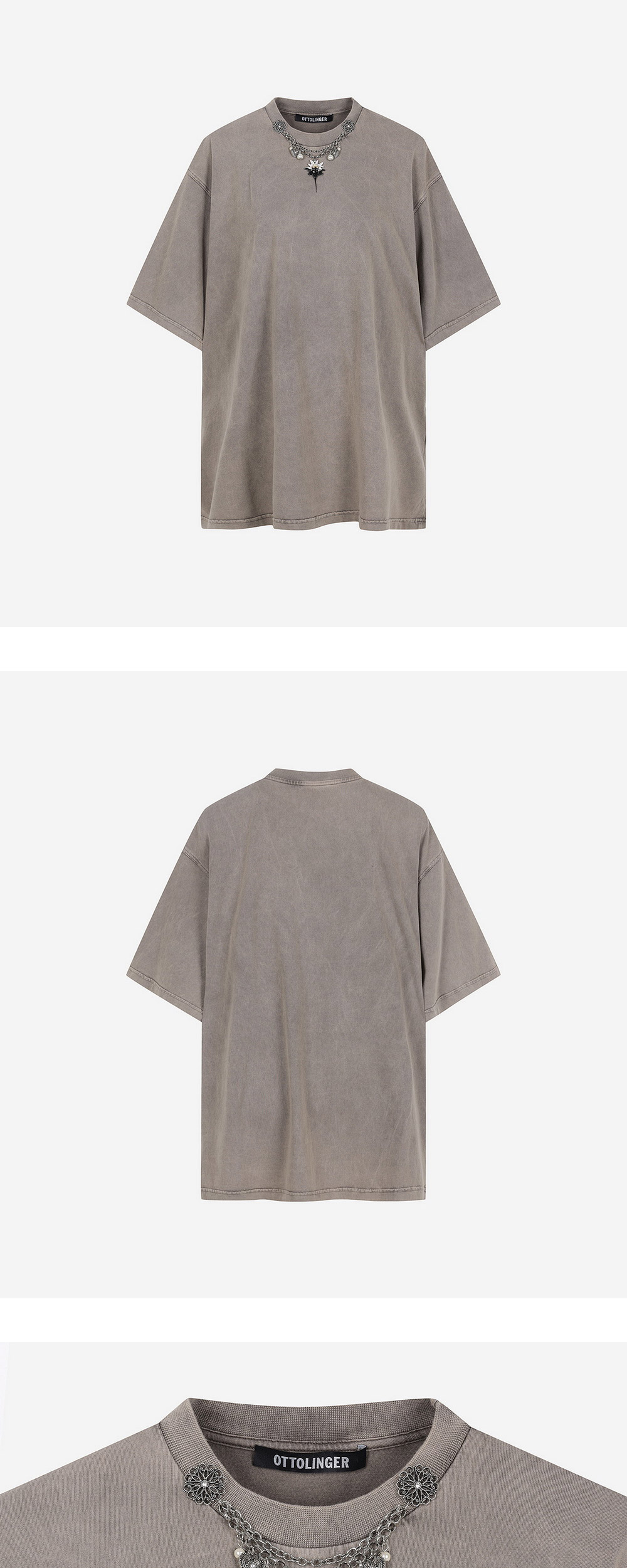 빈티지한 워싱이 돋보이는 오토링거의 오버사이즈 핏의 워시드 클래식 크루넥 티셔츠입니다. 네크라인 주위의 펜던트가 특징입니다. - 빈티지한 워싱 - 오버사이즈 핏 - 네크라인의 펜던트 디테일 * 상품마다 참 부분의 개체별 차이가 있을 수 있습니다. * 모델 스펙 : 185cm / 착용 사이즈 : XS