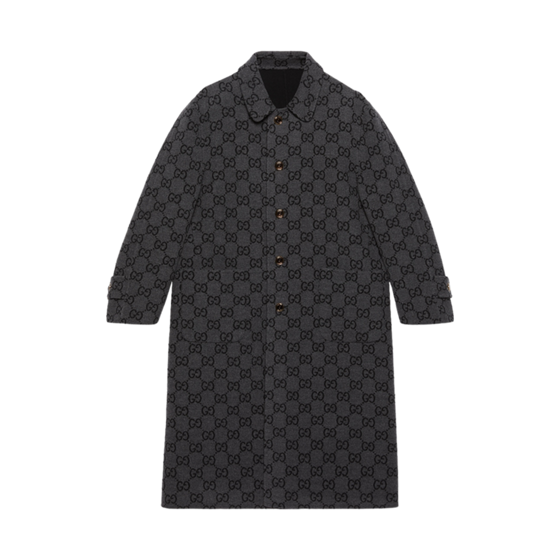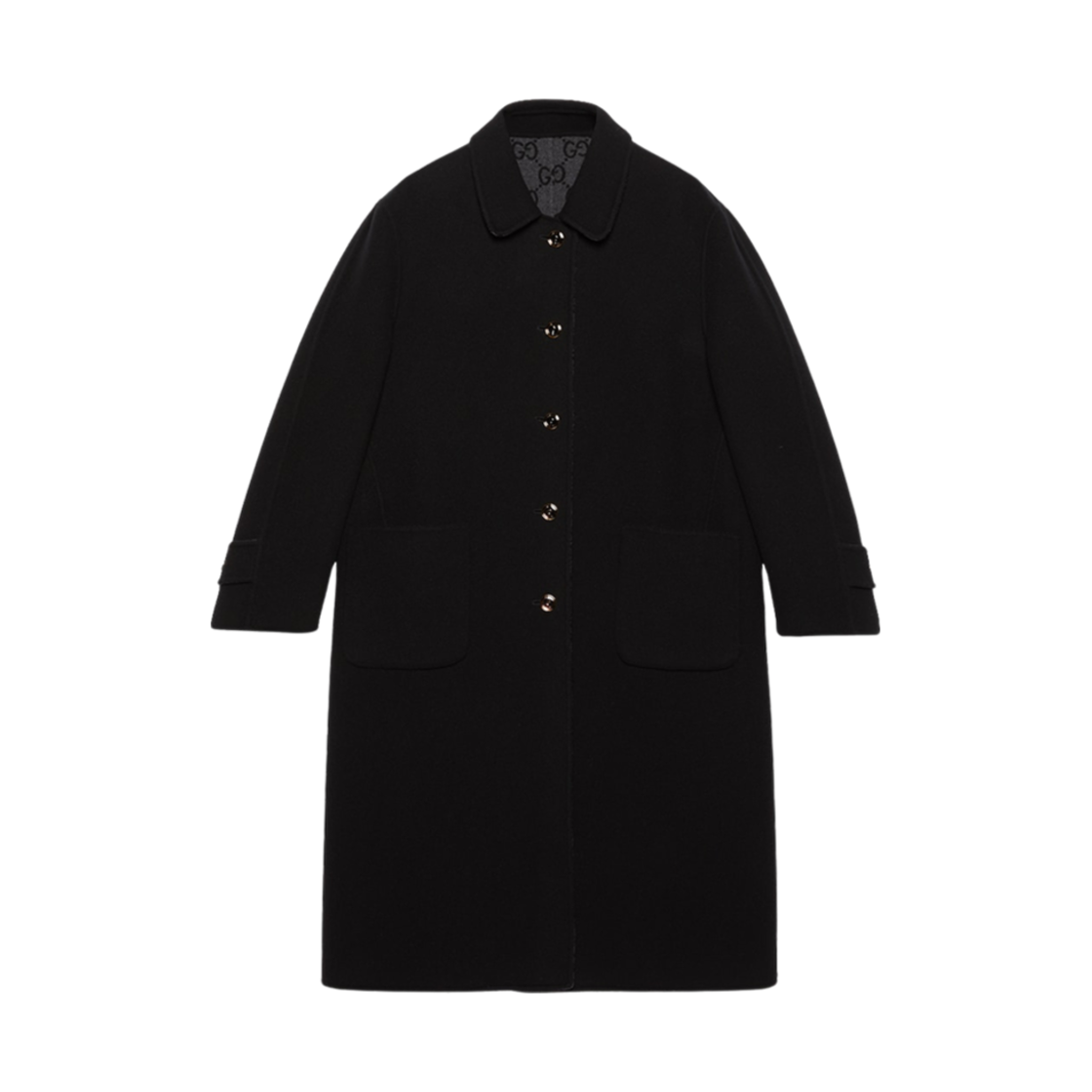 (W) Gucci Reversible GG Wool Coat Black Grey