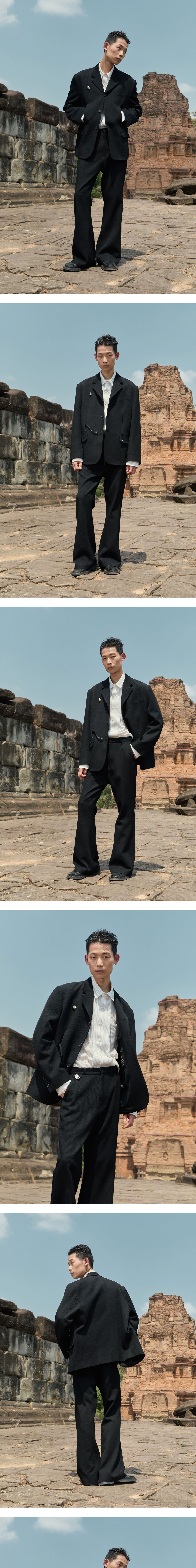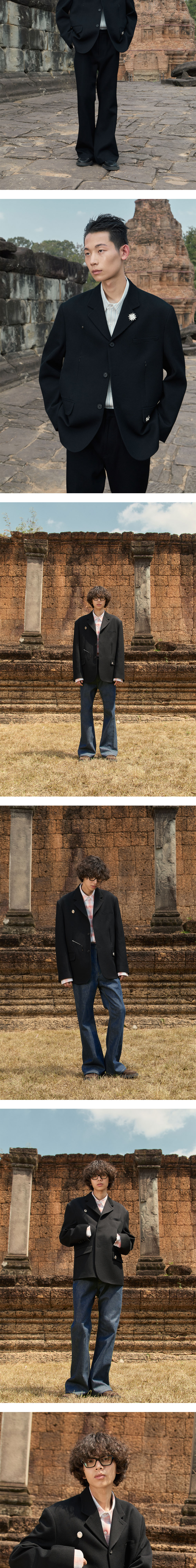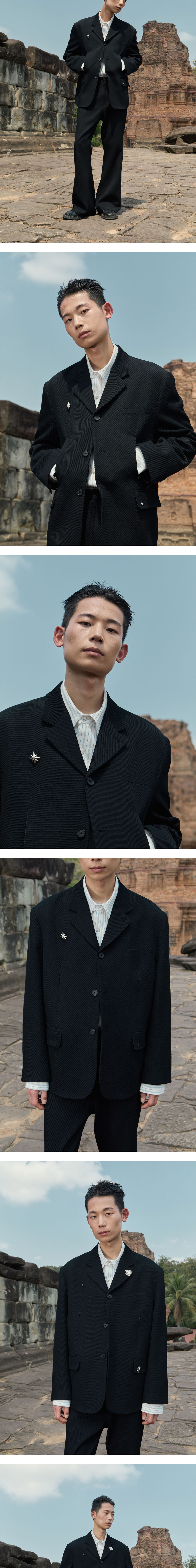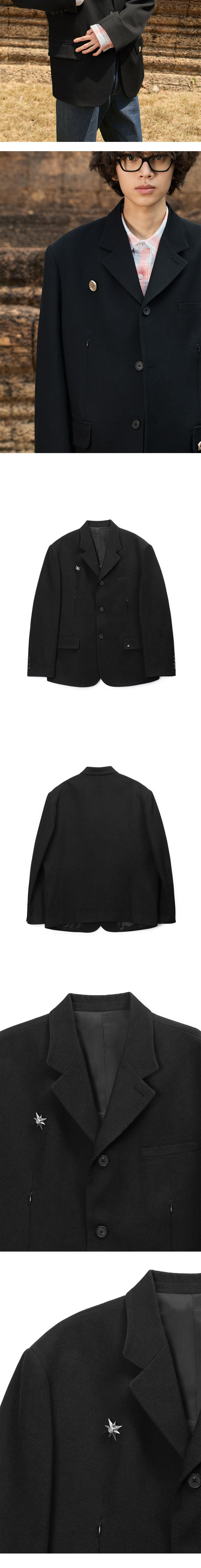 에스티유 3버튼 다이애그널 지퍼 블레이져 블랙 + 스타 스냅 브로치 동봉