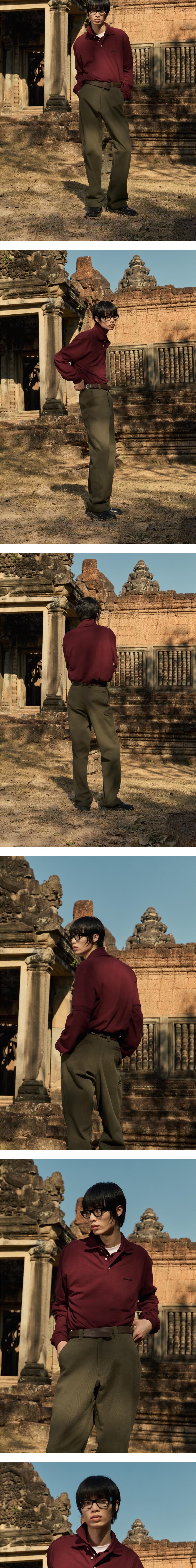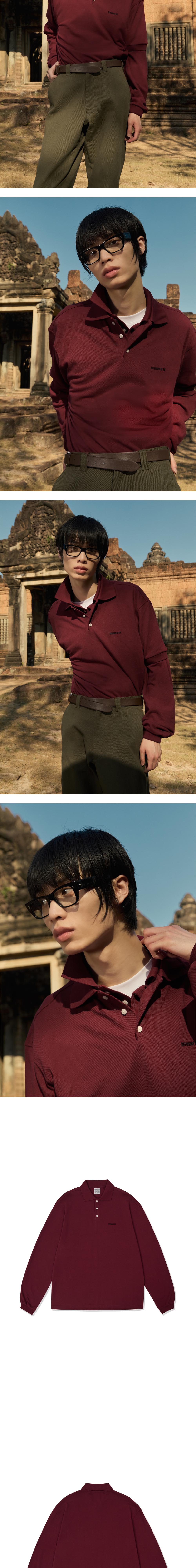 에스티유 레이어드 PK 폴로 셔츠 버건디 + 반팔, 긴팔 세트