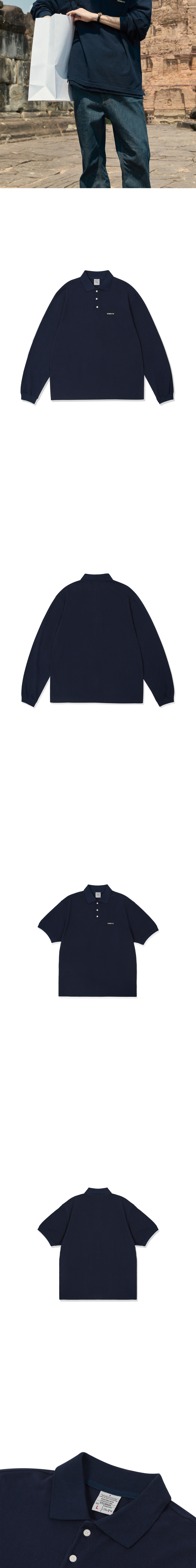 에스티유 레이어드 PK 폴로 셔츠 네이비 + 반팔, 긴팔 세트