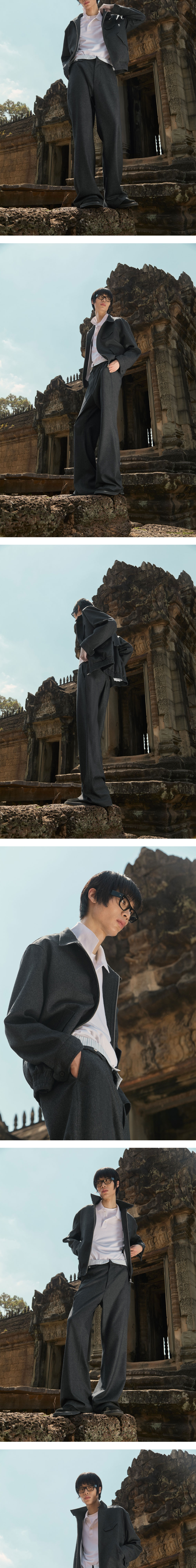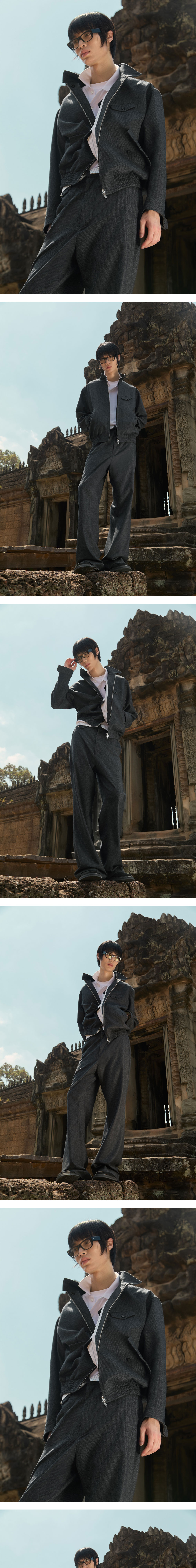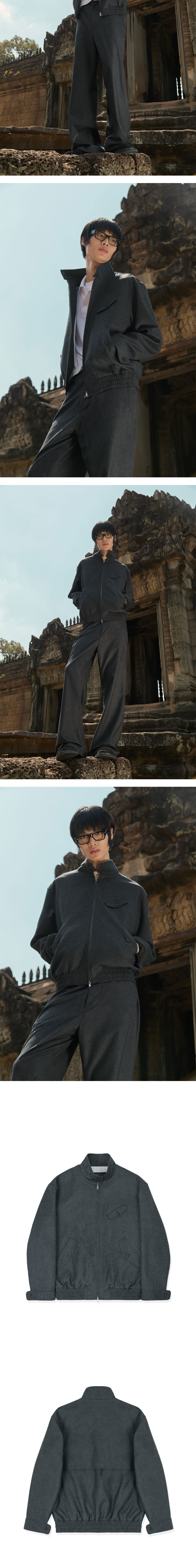 에스티유 하이넥 스트라이프 울 자켓 다크 그레이 + 버티컬 지퍼