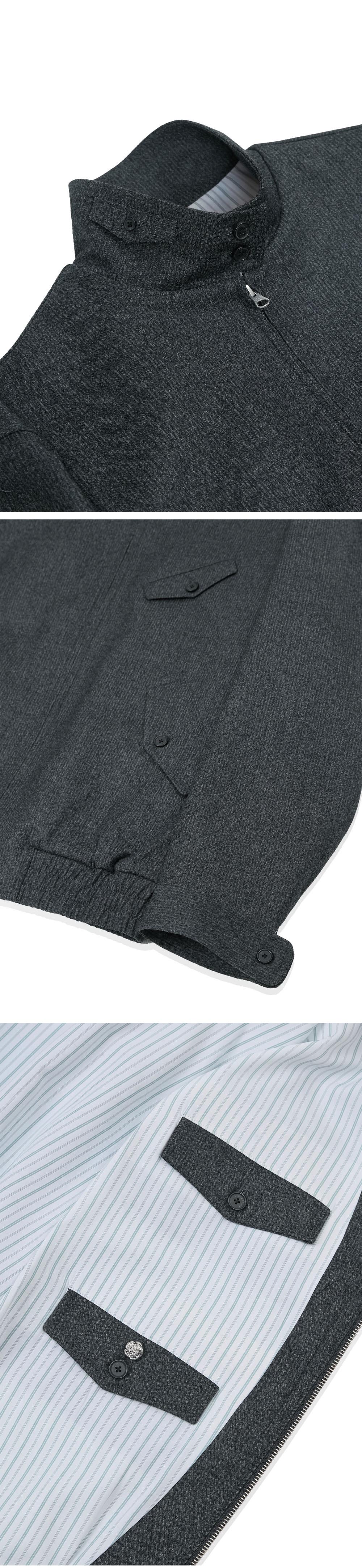 STU High Neck Stripe Wool Jacket Dark Grey + Vertical Zipper