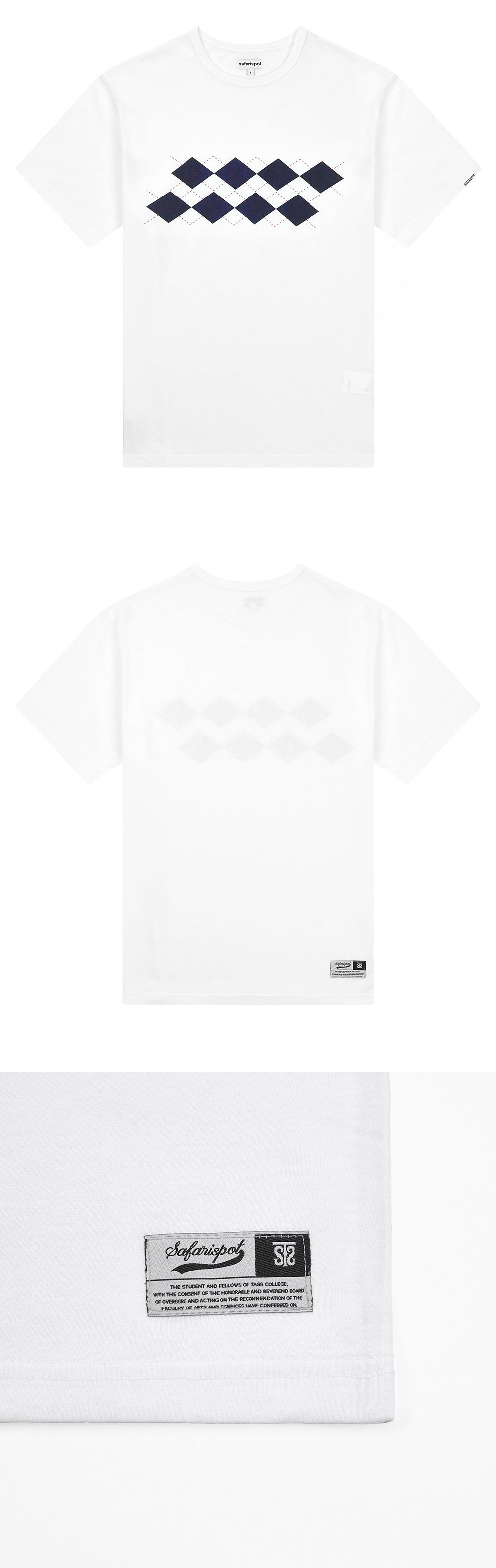 사파리스팟 루 베이스 스쿨 아가일 티 화이트