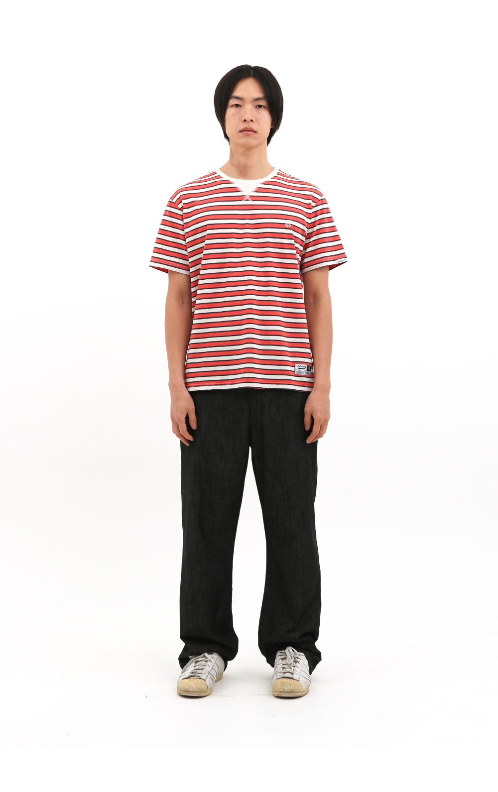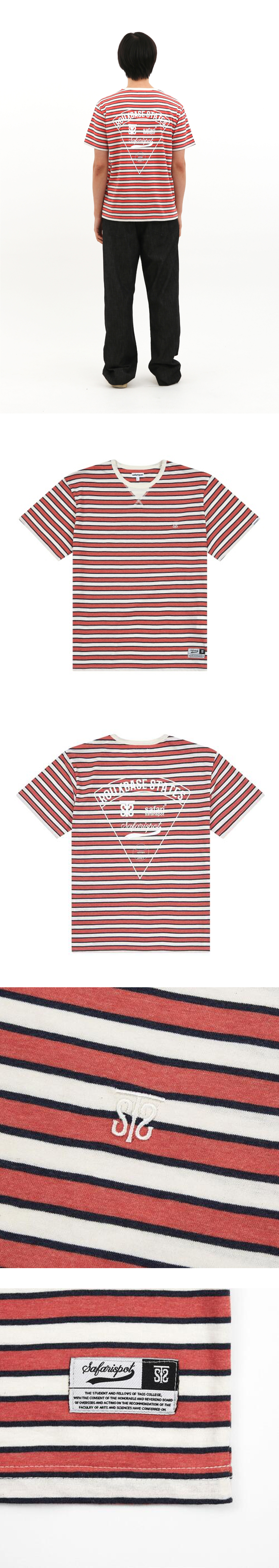 사파리스팟 루베이스 스쿨 잇더피자 스트라이프 티 아이보리 버건디