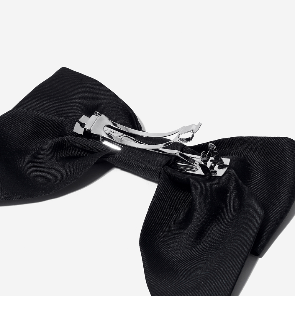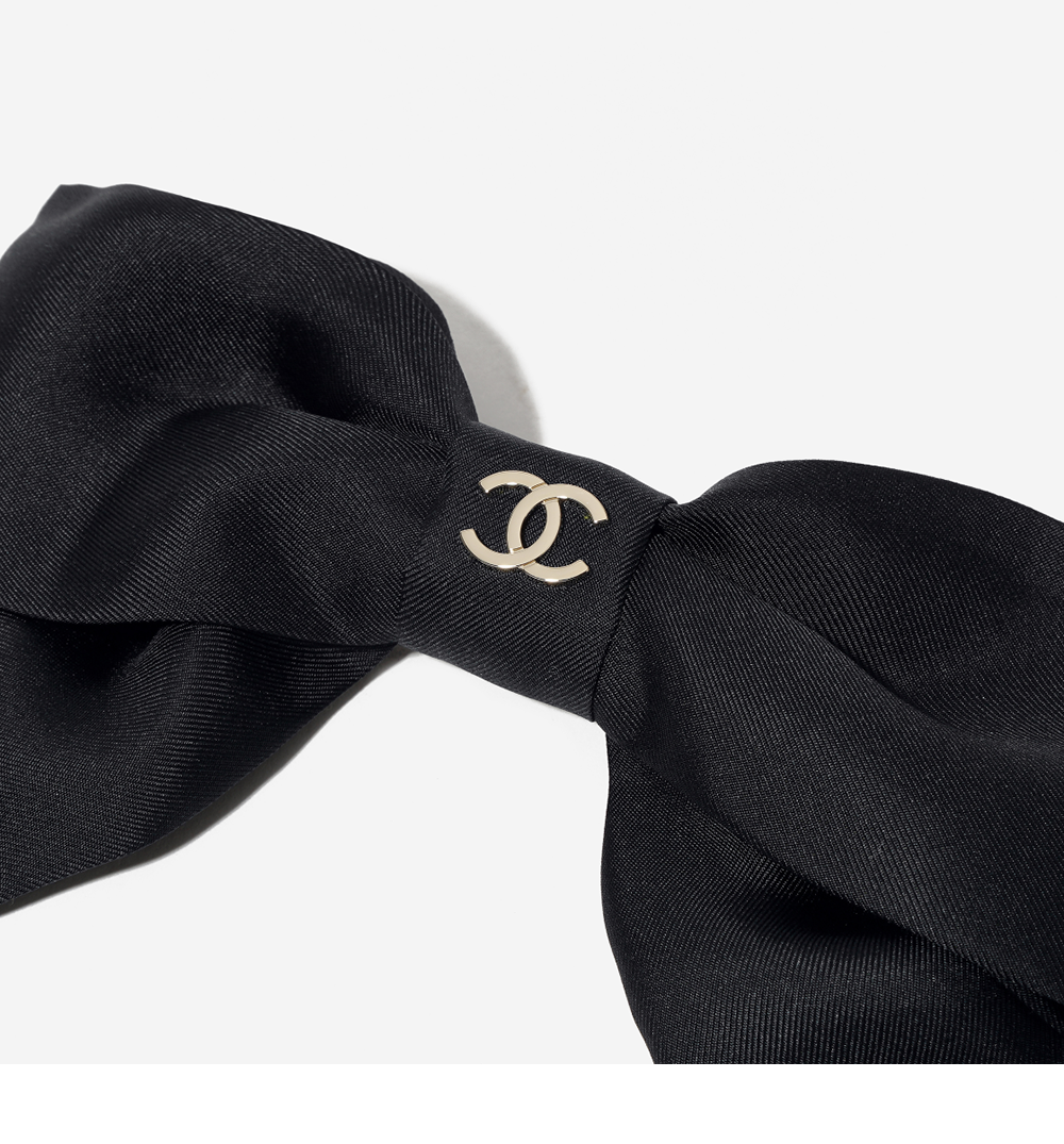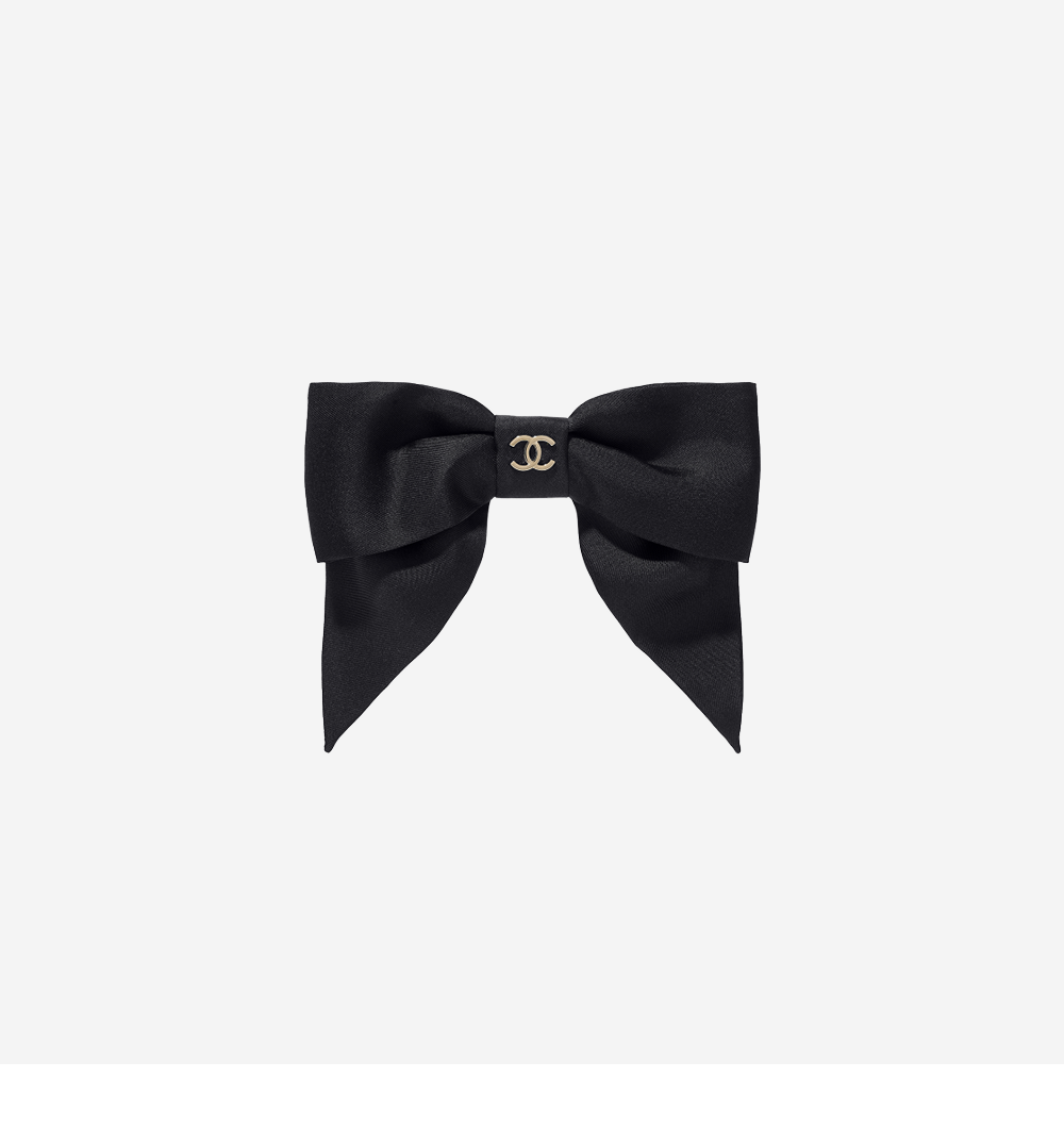 (W) Chanel Bow Barrette Silk Twill & Black Gold