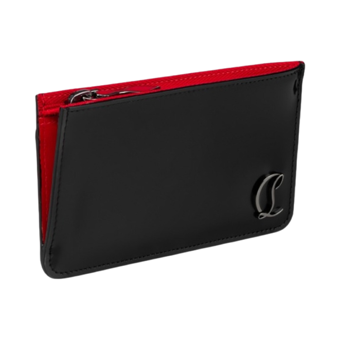 Christian Louboutin Loubi54 Calf Leather Card Holder Black Gun Metal