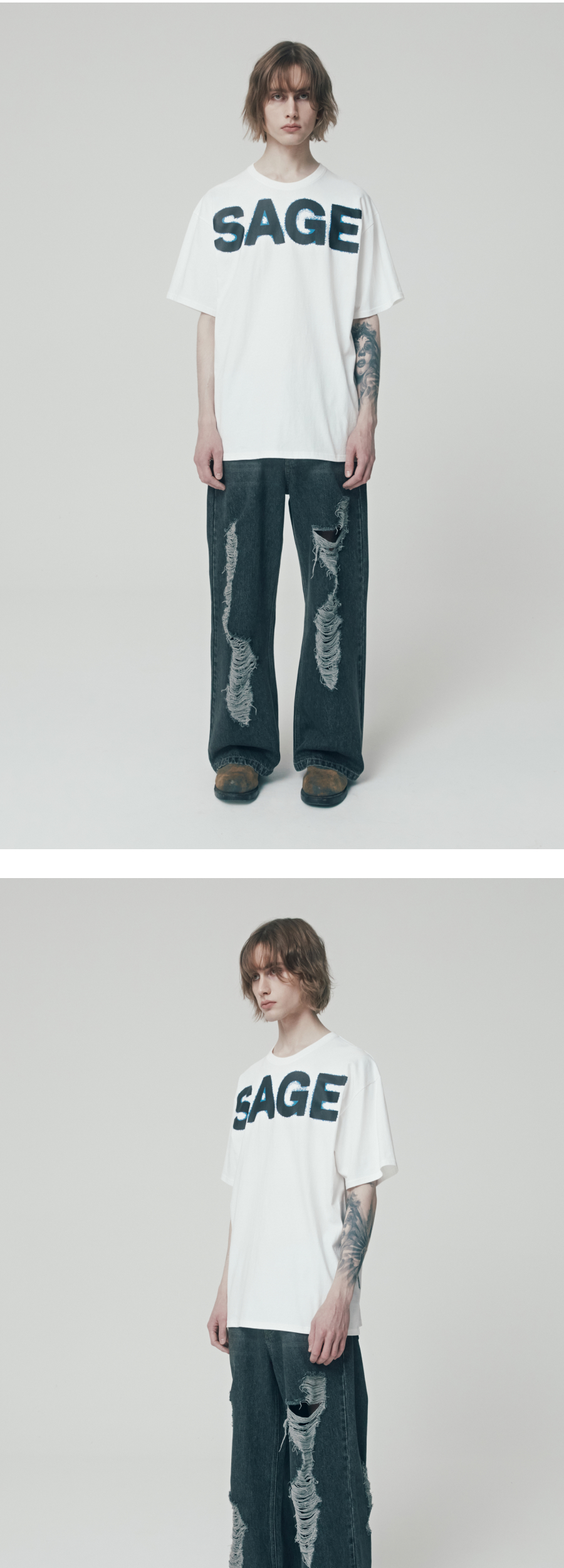 더바이닐하우스 와이드 로고 티셔츠 화이트