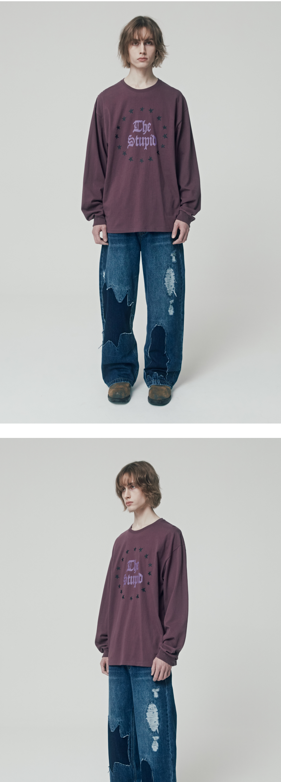 더바이닐하우스 스투핏 LS 티셔츠 퍼플