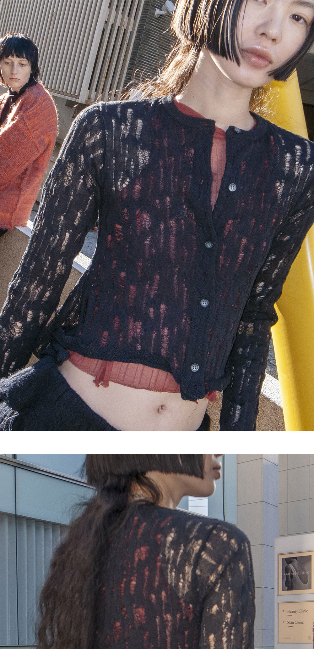 사다리 모양의 크래시 디자인이 매력적인 퍼버즈의 래더 크래쉬 니트 가디건입니다. - 약간의 광택과 선명함이 있는 헴프 혼방 코르크스크류 소재 - 레귤러 핏 - 드레이퍼리한 사이드 헴 - 전면 버튼 클로저 * 모델 신체 스펙 : 172cm