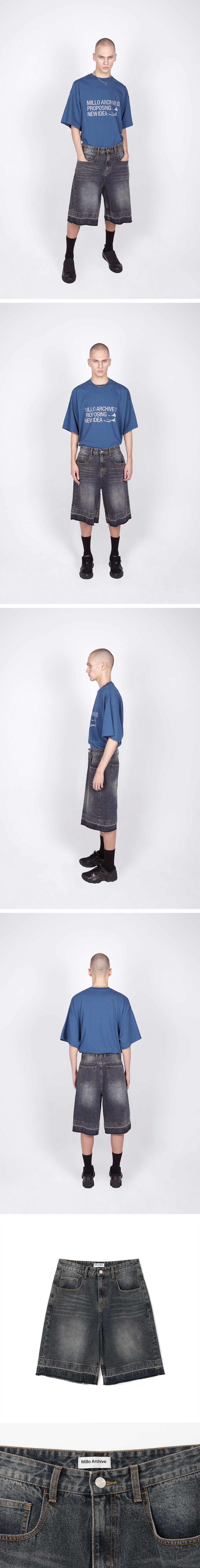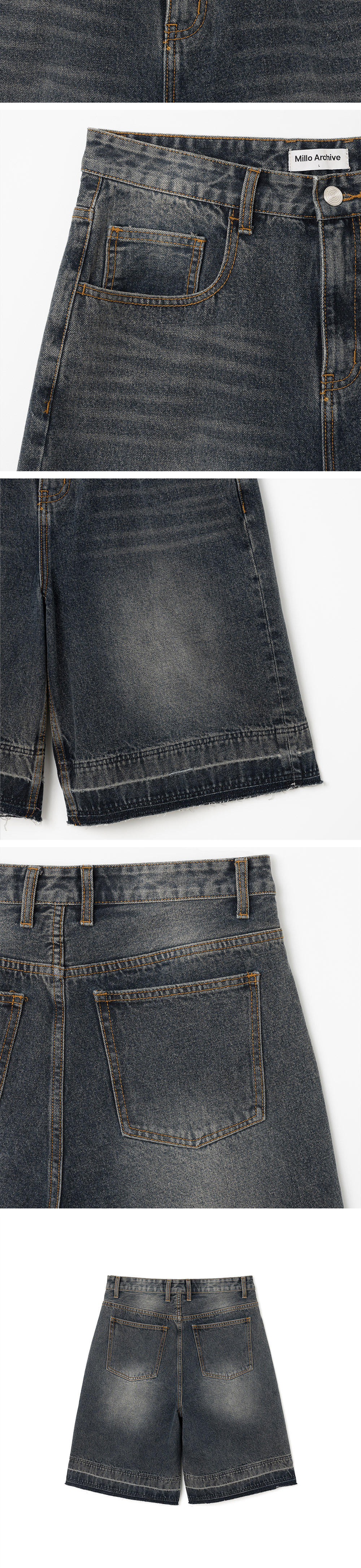 Millo Archive Layer Washed Denim Bermuda Pants Deep Blue