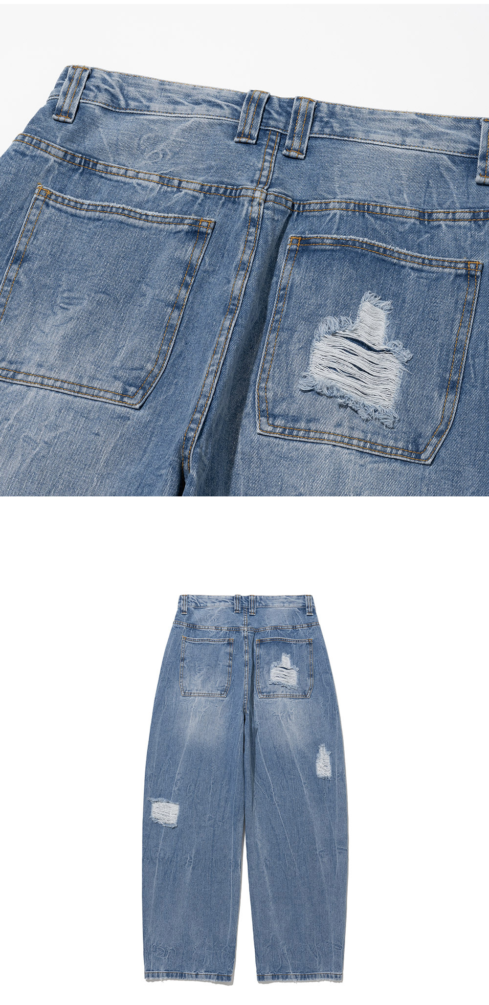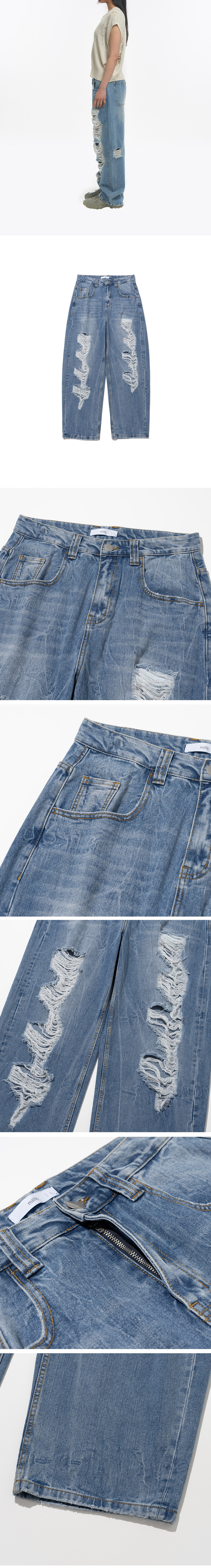 밀로 아카이브 리플렉트 커브드 데미지 팬츠 라이트 블루