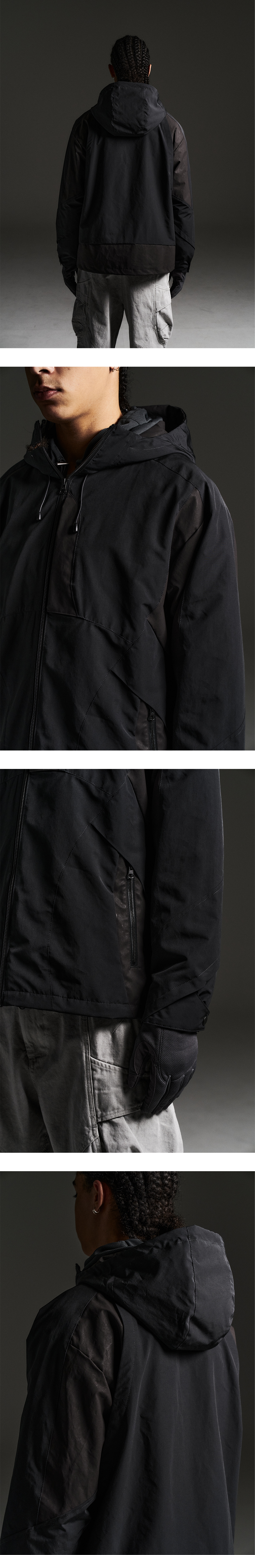 YKK 2WAY METALUXE VISLON ZIPPER FRONT CHEST ZIPPER POCKET HOODIE/HEM STRING STOPER SLEEVE SANP DESIGN ZIPPER POCKET ON INNER