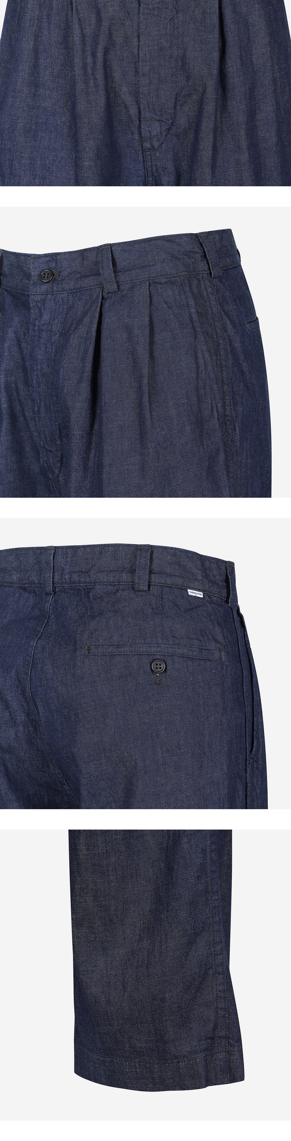 오어슬로우의 감성이 묻어나는 투 턱 데님 와이드 트라우저입니다. 여유로운 핏으로 어떤 룩에도 잘 어울리며, 내구성이 뛰어난 데님 소재를 사용했습니다. - 유니섹스 - 측면 포켓 2개 - 버튼 뒷면 포켓 2개
