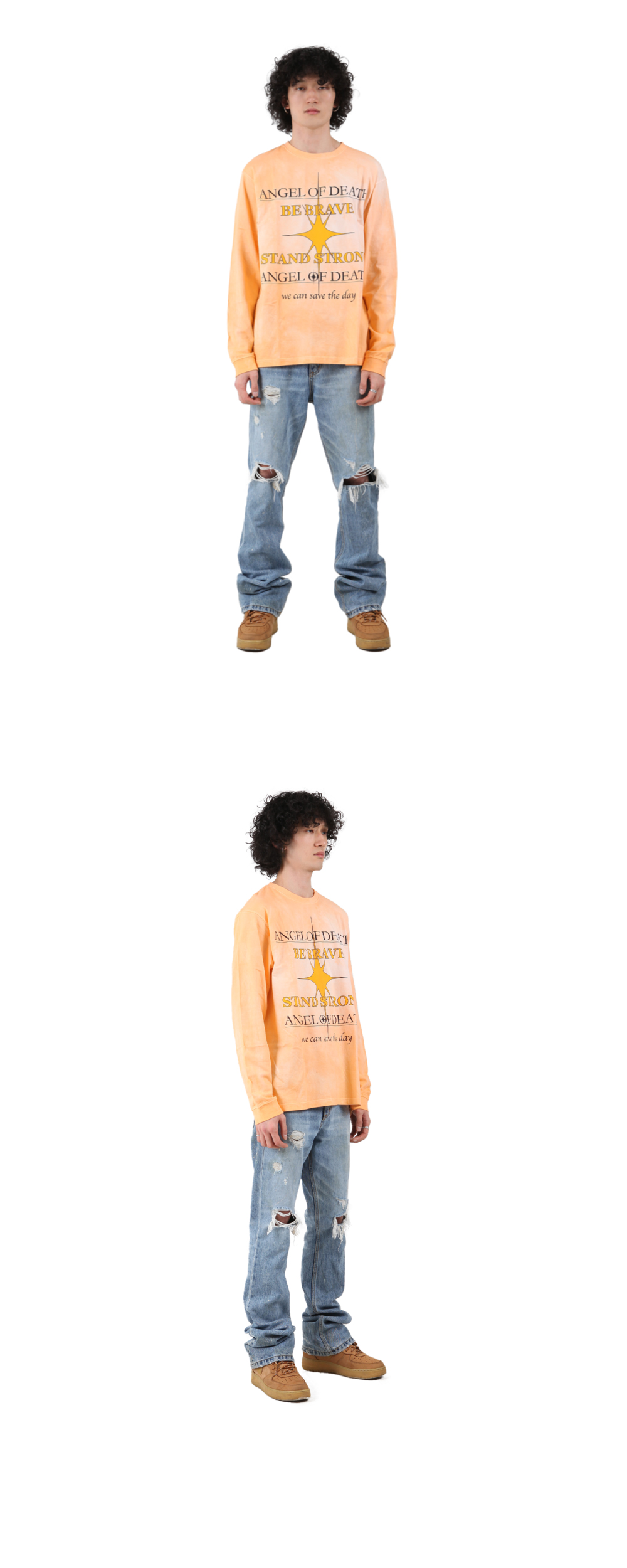 모스키토 머더러스 엔젤 오브 데스 - 비 브레이브 스탠드 스트롱 워싱 롱슬리브 옐로우