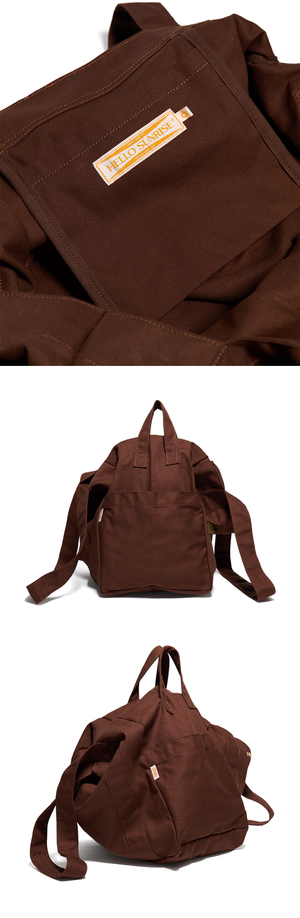 모든 소지품을 담을 수 있는 넉넉하고 여유로운 사이즈의 가방입니다. - 부드럽고 가벼운 소재의 옥스포드 원단 사용 - 사이드 2개의 포켓 - 내부 1개의 미니 포켓 - 사이드 핸들 스트랩 - 사이드 헬로선라이즈 포인트라벨 - 전면 헬로선라이즈 오리지널 로고 그래픽 프린팅