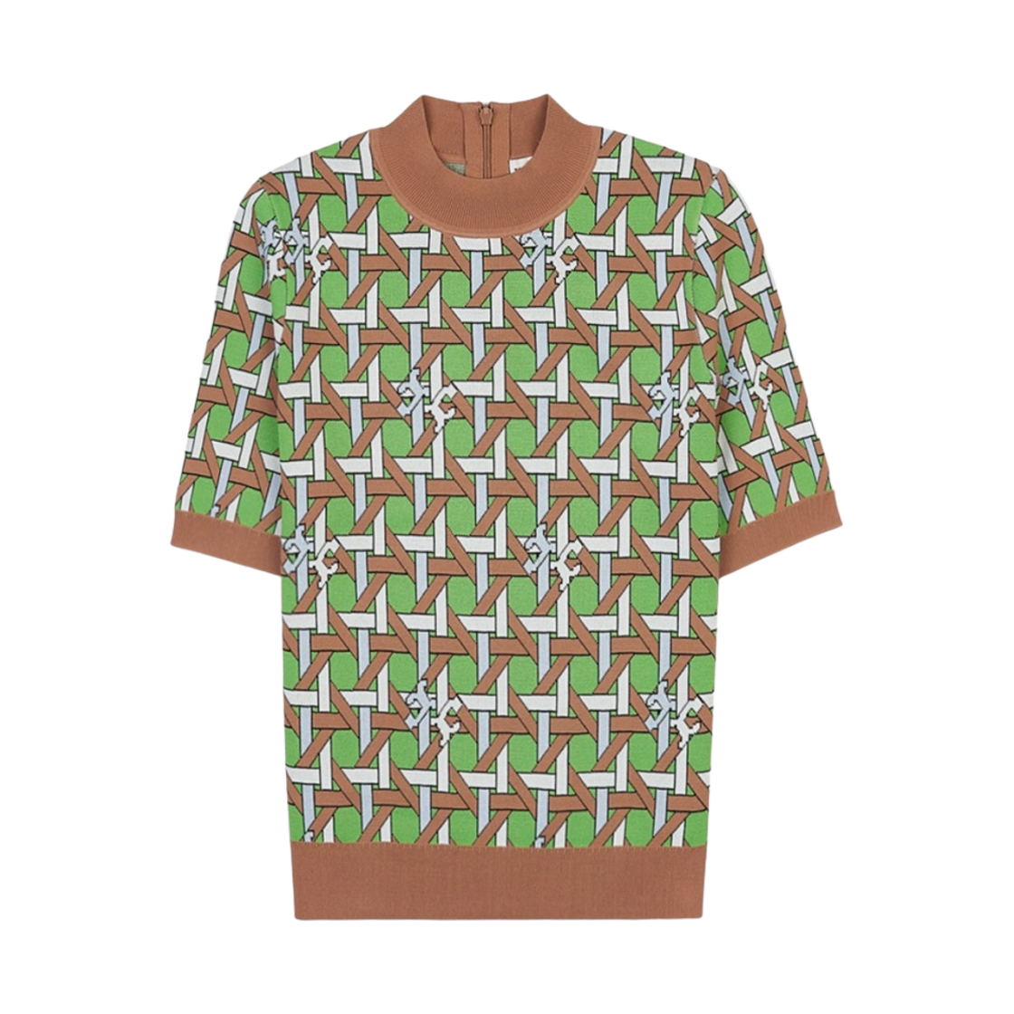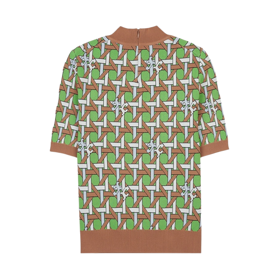(W) Tory Burch Basketweave Mock-Neck Sweater Crisp Blue