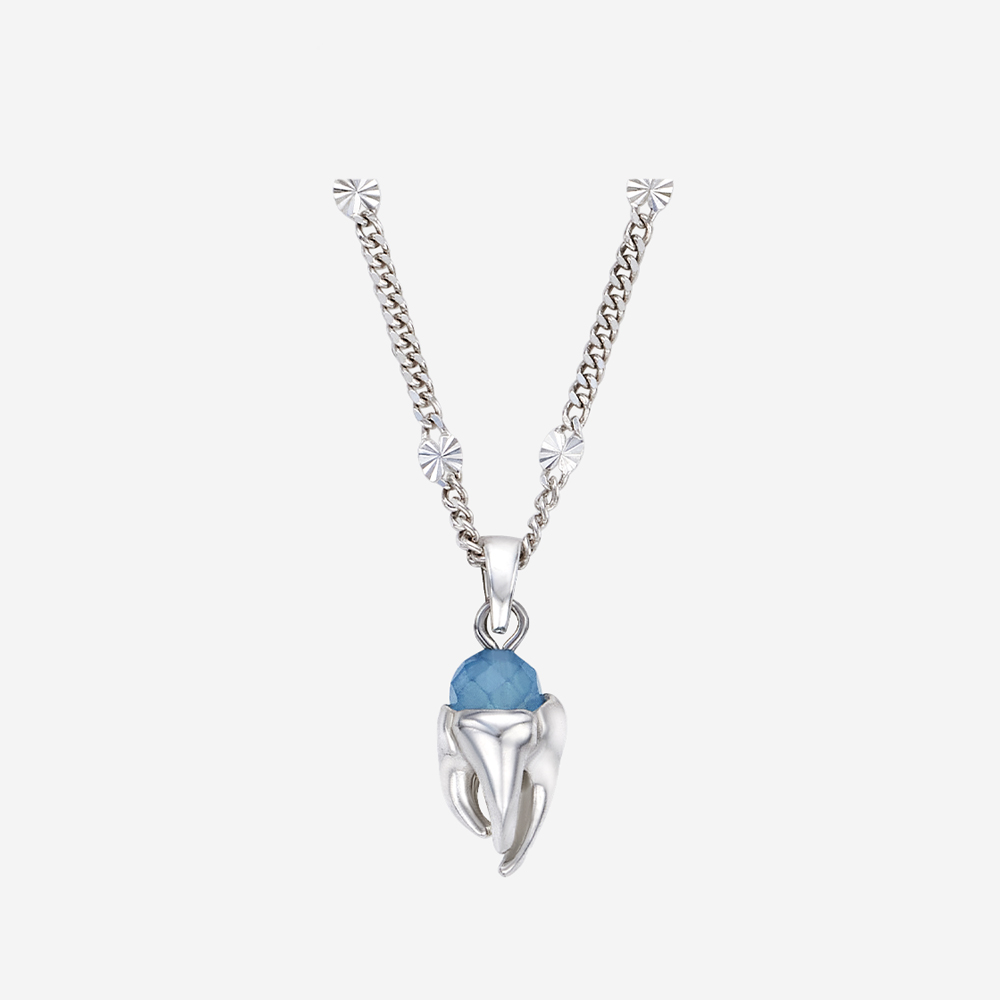 작은 치아 형태의 실버 펜던트에 3월의 탄생석 아쿠아마린을 더했습니다. 맑고 차분한 푸른빛이 Baby Teeth 특유의 작은 실루엣을 더욱 또렷하게 드러냅니다.