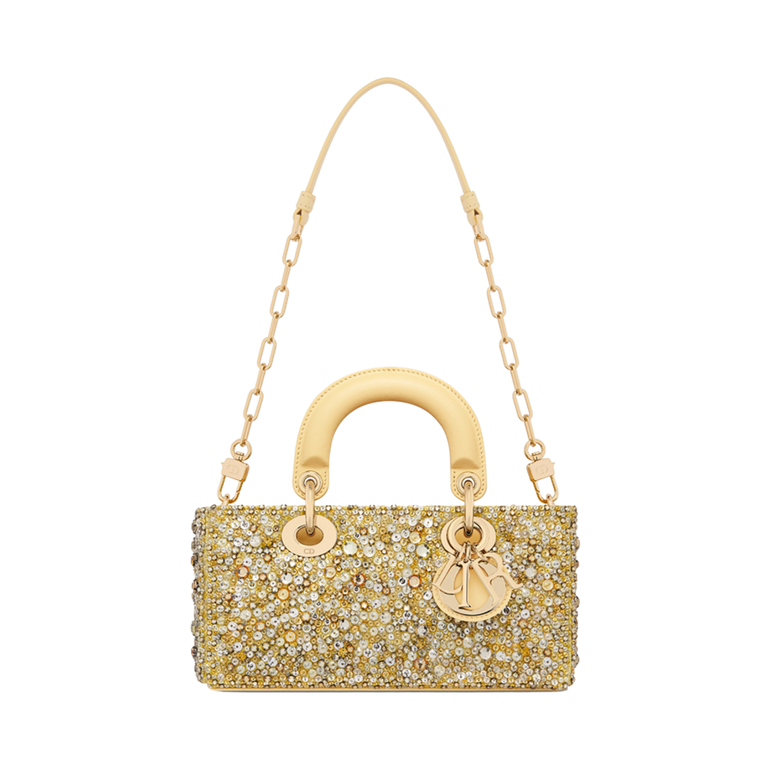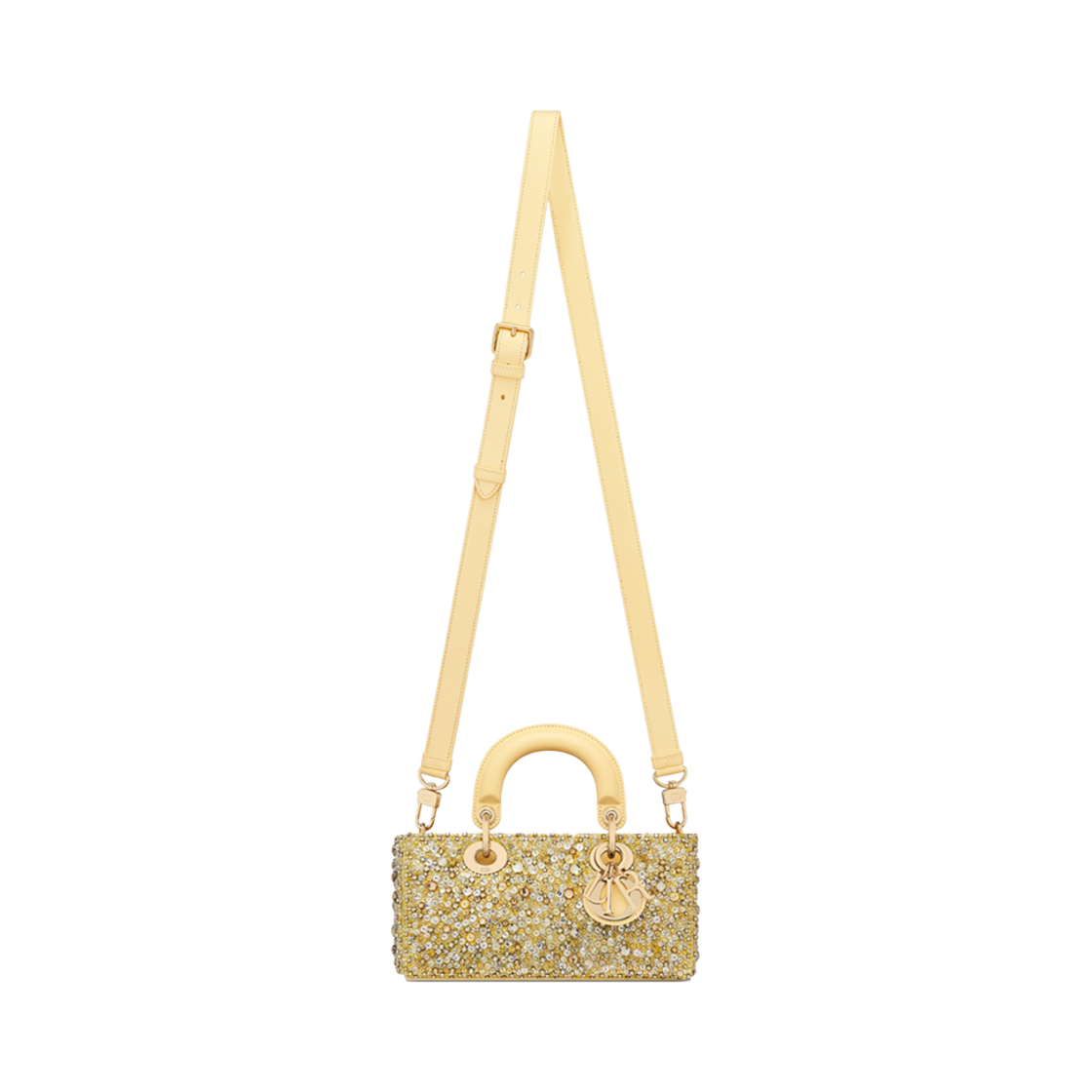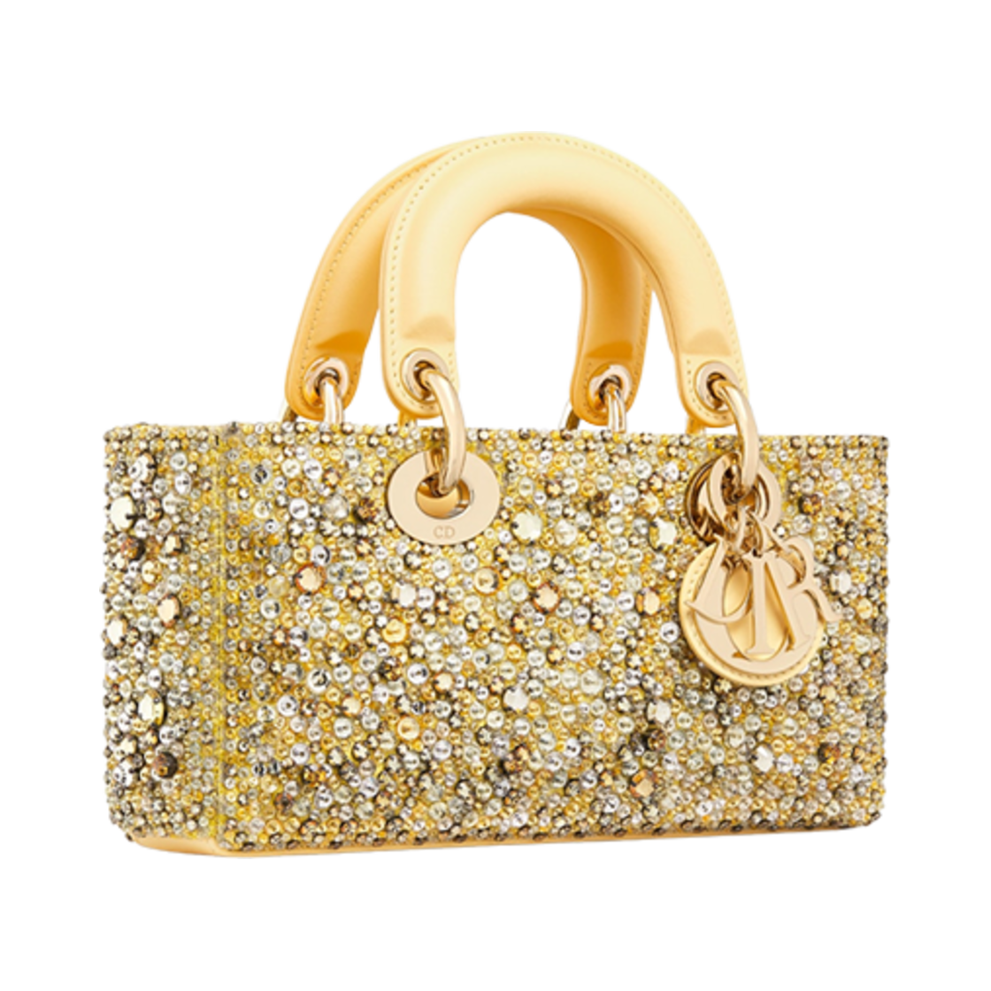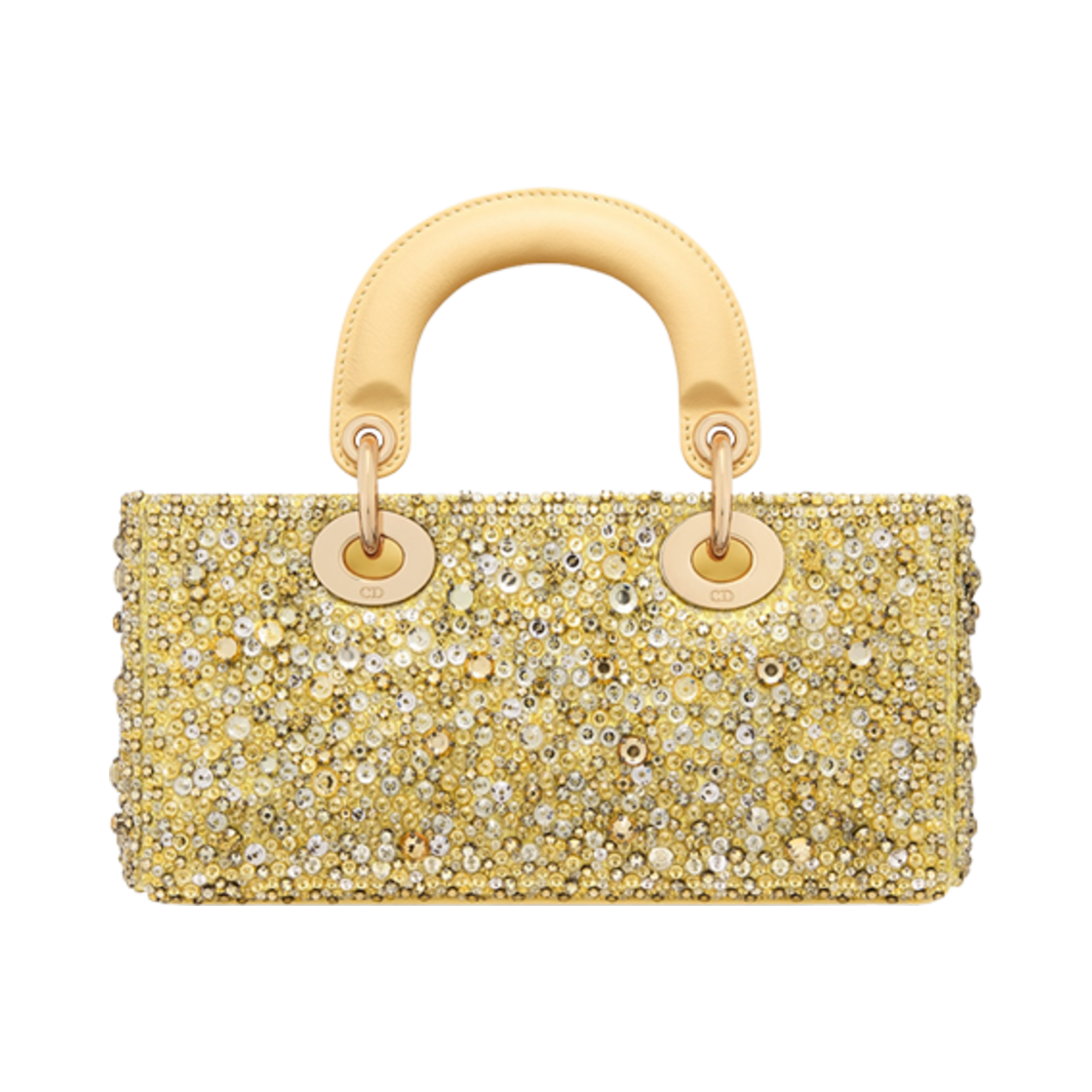 Dior Small Lady D-Joy Bag Pastel Yellow Strass Satin