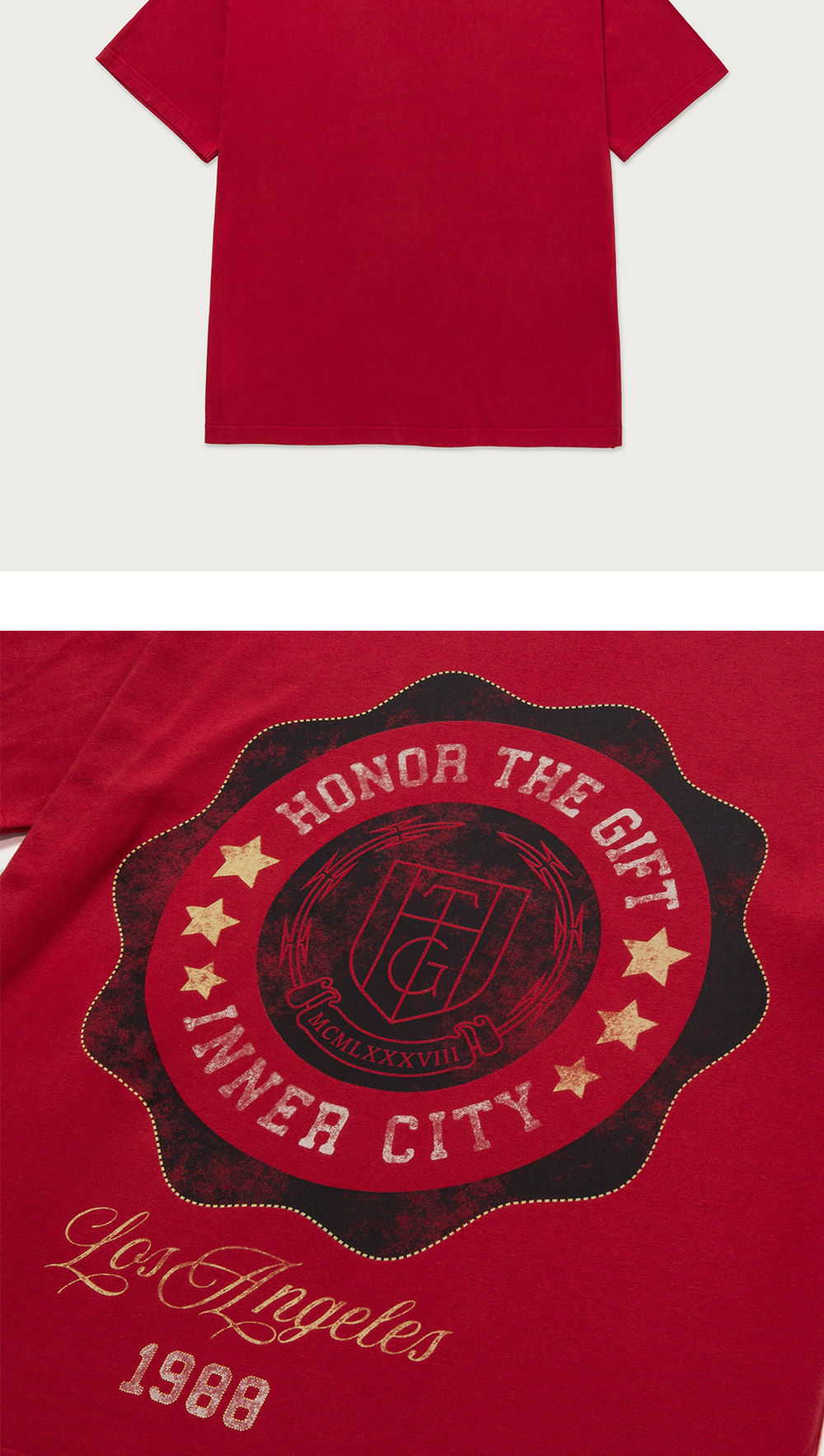 낡은 듯한 프린팅 디자인으로, 오너더기프트만의 감성이 잘 묻어나는 HTG 씰 로고 티셔츠를 소개합니다. - 페이디드 스크린 프린트 - HTG® 커스텀 라벨 - 7oz 저지 소재