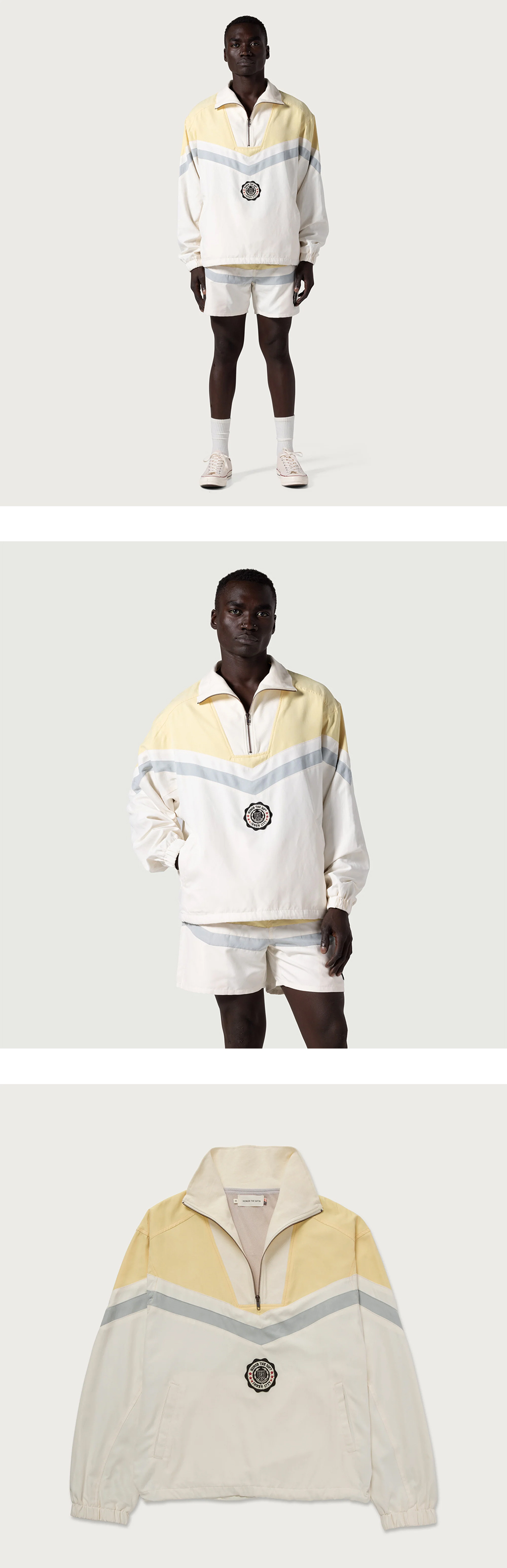 컬러블록 디자인과 패치 로고가 특징인 오너더기프트의 브러쉬드 폴리 트랙 아노락을 소개합니다. - 하프 집 풀오버 - 메쉬 라이닝 안감 - 패치 로고 - 오리지널 아트워크