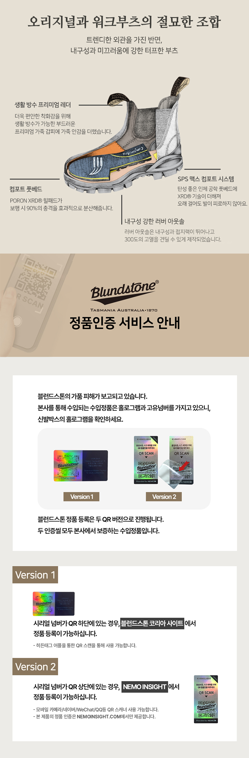 MAKING LIGHT WORK OF HARD WORK FOR 150 YEARS. 블런드스톤 부츠 하나면 충분 합니다. 1870년 부터 150년간 오직 부츠만 만들어 온 호주의 블런드스톤은 압도적인 내구성과 편안함으로 오늘날 세계에서 가장 사랑받는 첼시부츠 입니다. LUG #2239 워크부츠와 블런드스톤 오리지널 첼시부츠의 절묘한 조합이 만든 러그부츠 청키하고 트렌디한 외관을 가진 반면,어떤 부츠 보다도 내구성과 미끄러움에 강한 터프한 부츠입니다.