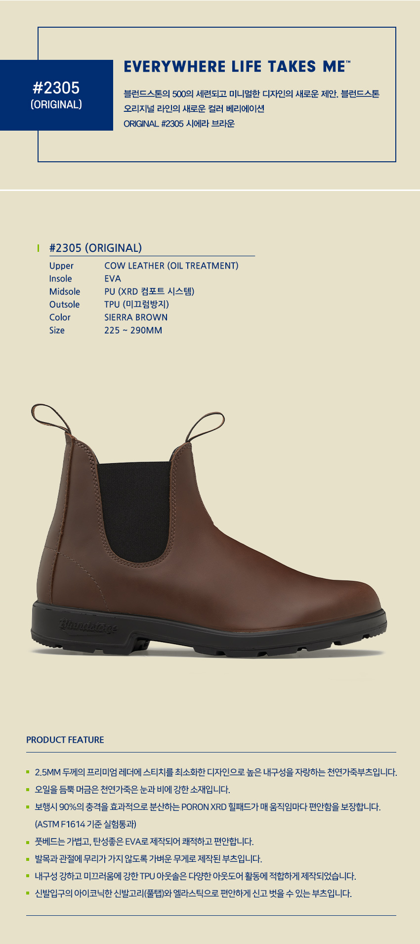 MAKING LIGHT WORK OF HARD WORK FOR 150 YEARS. 블런드스톤 부츠 하나면 충분 합니다. 1870년 부터 150년간 오직 부츠만 만들어 온 호주의 블런드스톤은 압도적인 내구성과 편안함으로 오늘날 세계에서 가장 사랑받는 첼시부츠 입니다. ORIGINAL #2305 최초의 블런드스톤 첼시부츠 지난 50년간 극도의 편안함과 클래식한 실루엣. 강한 내구성으로 전세계에서 사랑받는 블런드스톤 아이콘.