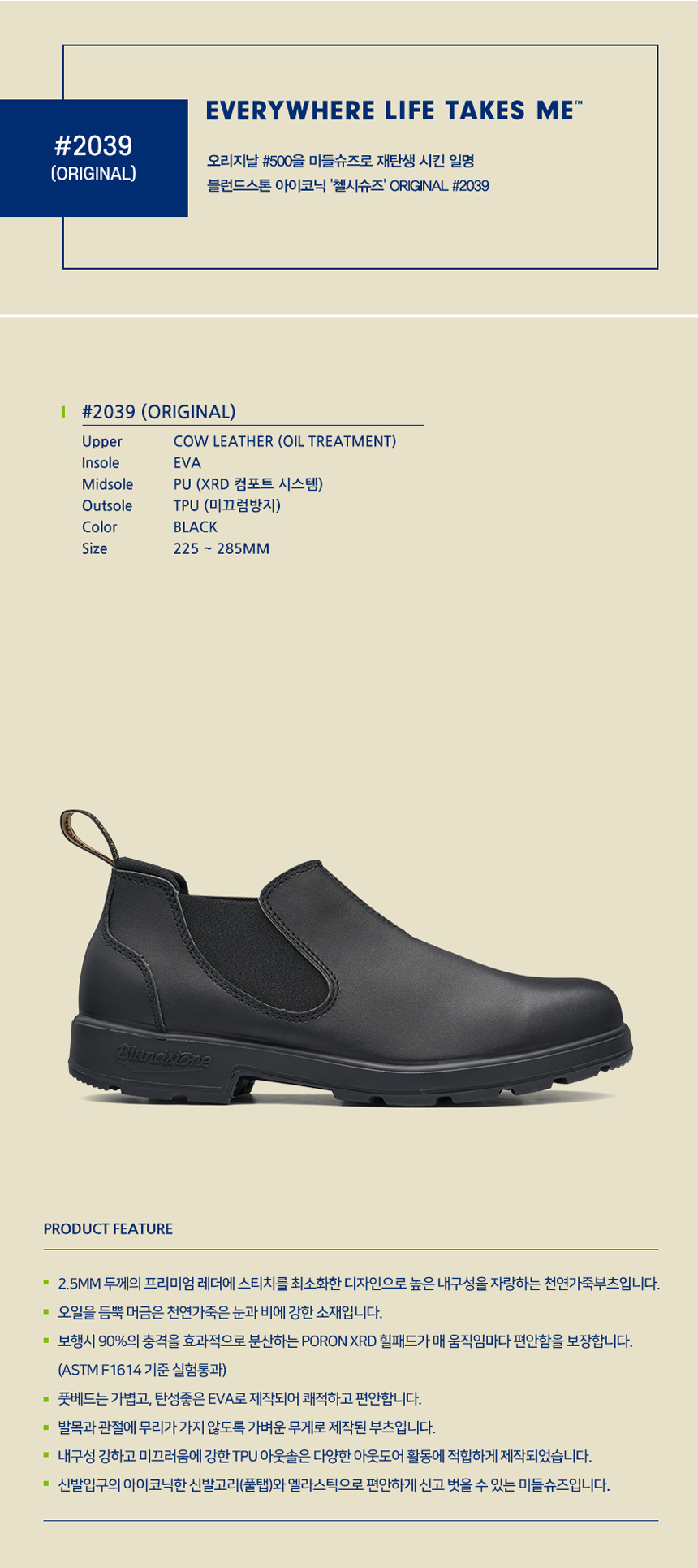 MAKING LIGHT WORK OF HARD WORK FOR 150 YEARS. 블런드스톤 부츠 하나면 충분 합니다. 1870년 부터 150년간 오직 부츠만 만들어 온 호주의 블런드스톤은 압도적인 내구성과 편안함으로 오늘날 세계에서 가장 사랑받는 첼시부츠 입니다. ORIGINAL #2039 오리지날 #500을 미들슈즈로 재탄생 시킨 일명 블런드스톤 아이코닉 '첼시슈즈'