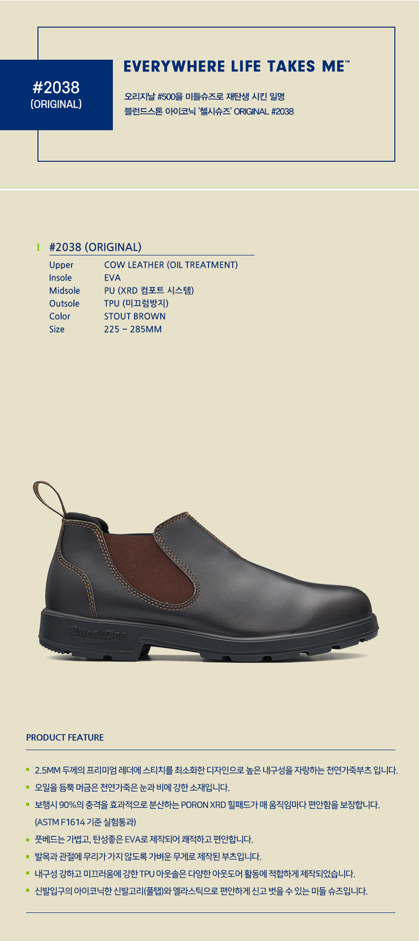 MAKING LIGHT WORK OF HARD WORK FOR 150 YEARS. 블런드스톤 부츠 하나면 충분 합니다. 1870년 부터 150년간 오직 부츠만 만들어 온 호주의 블런드스톤은 압도적인 내구성과 편안함으로 오늘날 세계에서 가장 사랑받는 첼시부츠 입니다. ORIGINAL #2308 오리지날 #500을 미들슈즈로 재탄생 시킨 일명 블런드스톤 아이코닉 '첼시슈즈'