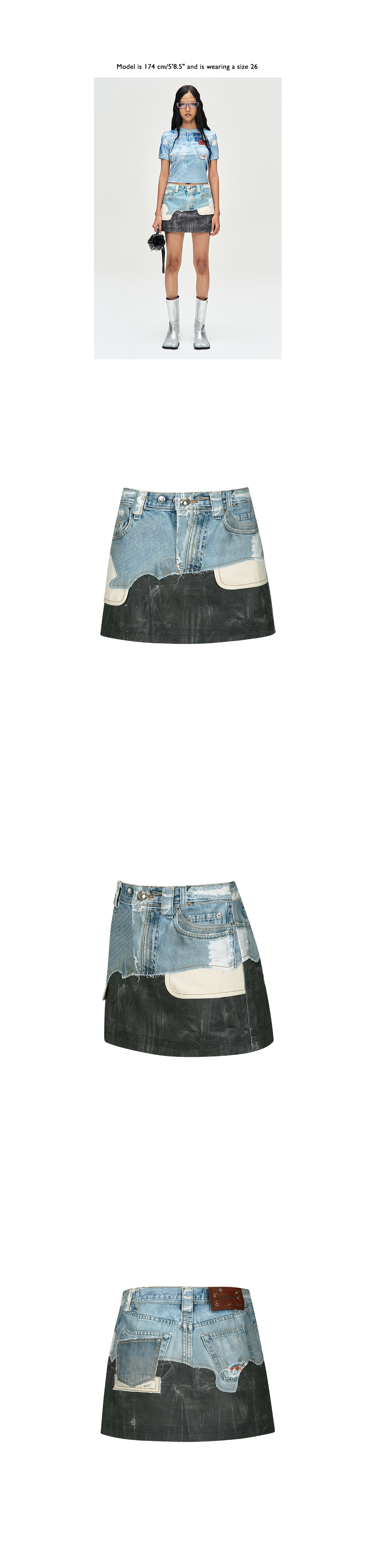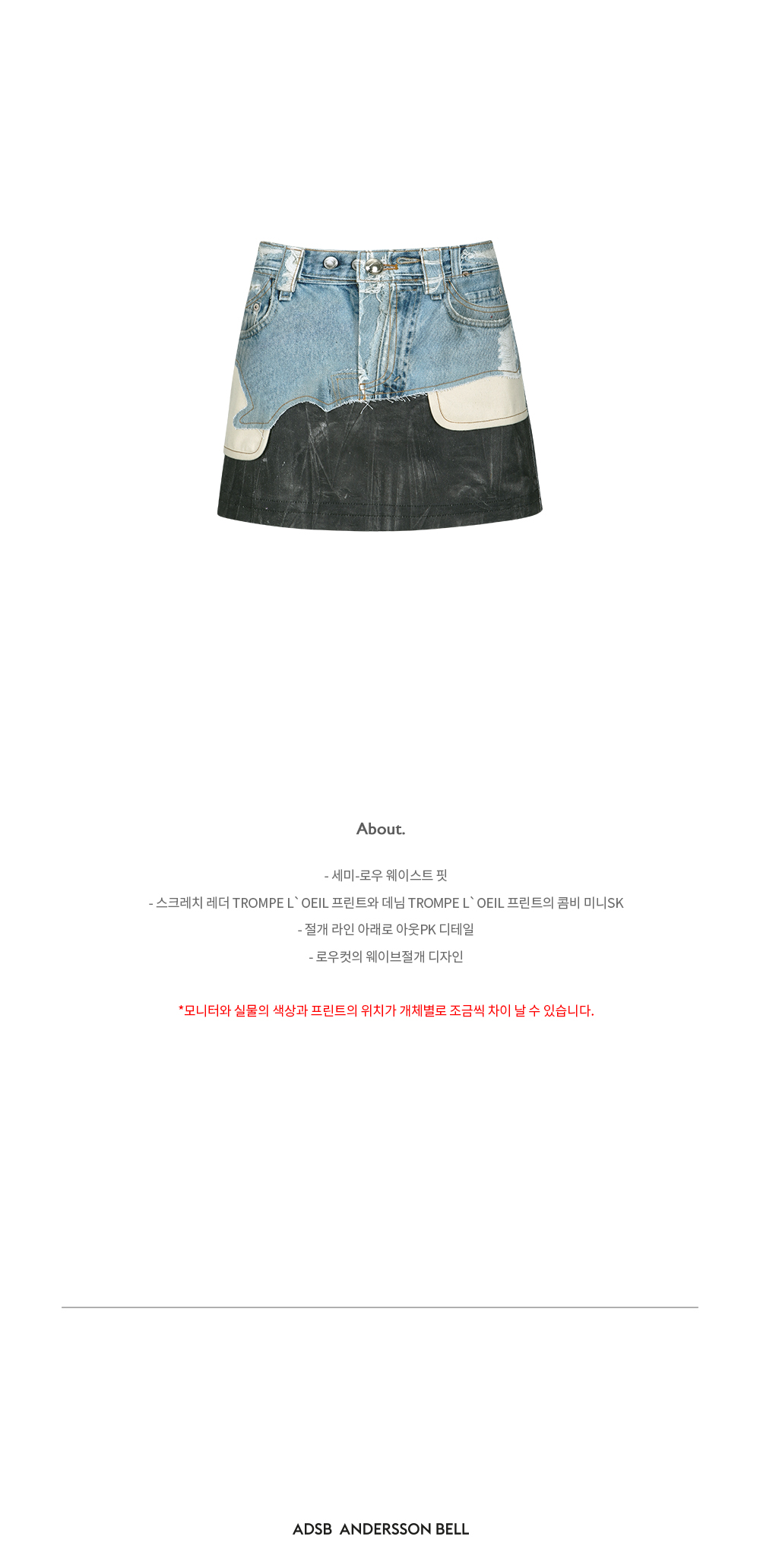 ADSB 앤더슨벨 우먼 포우 데님 & 레더 프린티드 미니 스커트 데님 블랙