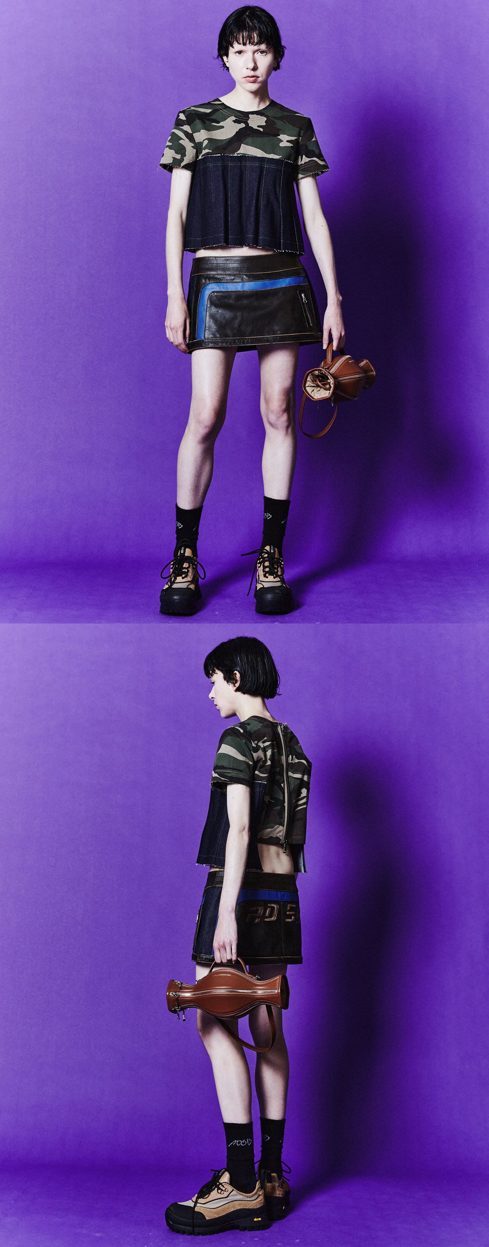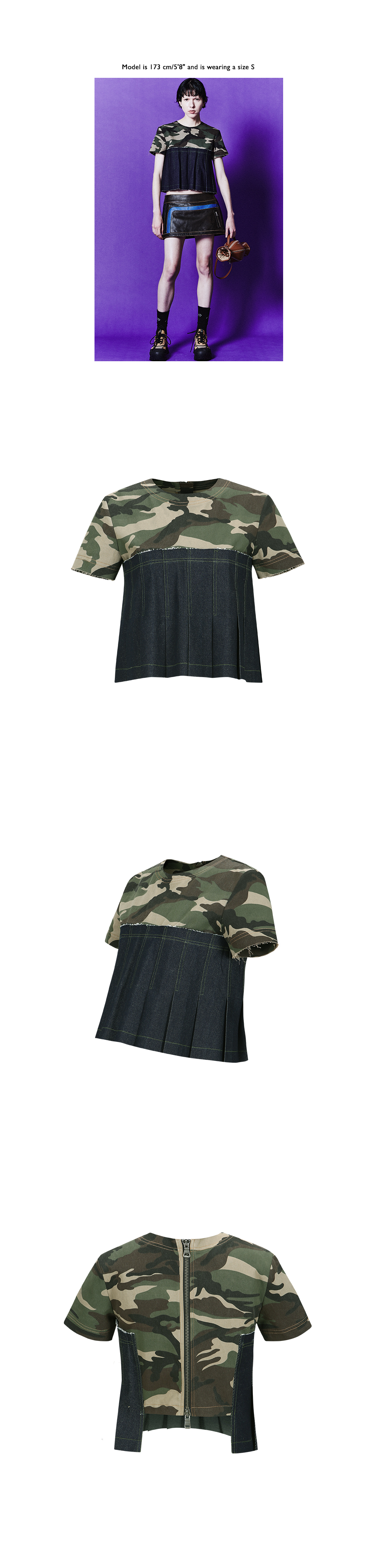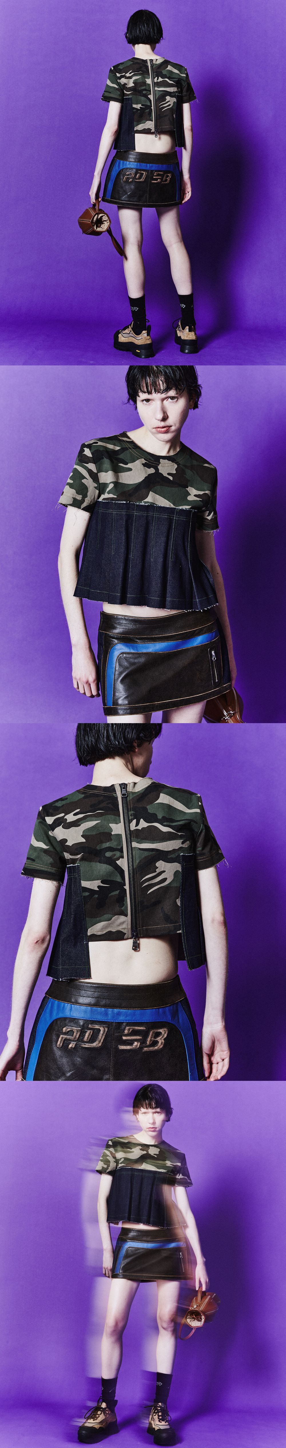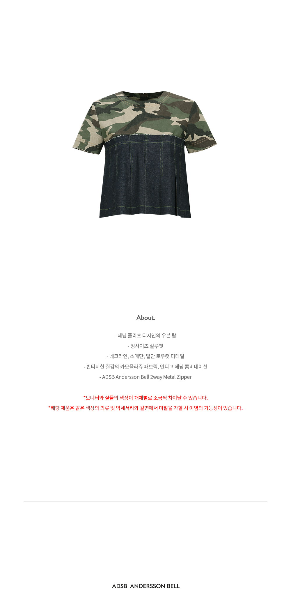 ADSB 앤더슨벨 우먼 카모플라쥬 플리츠 데님 탑 카키 인디고