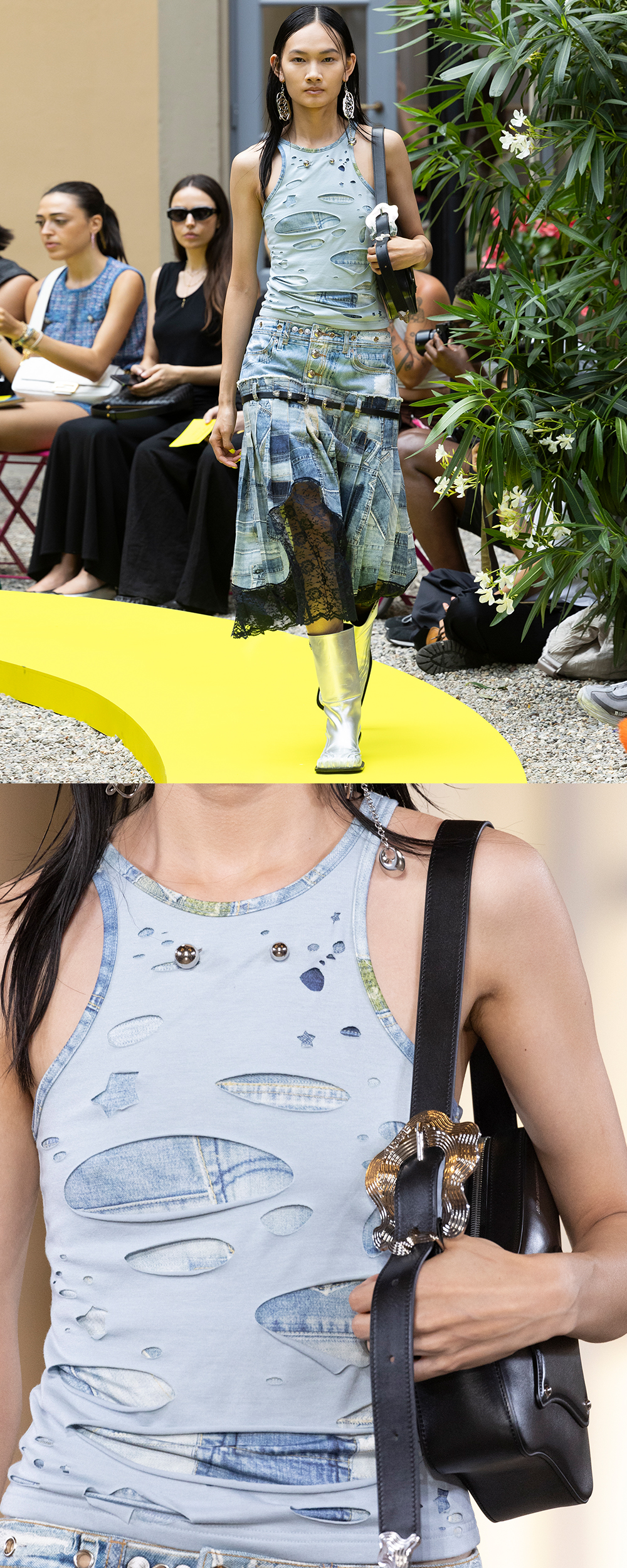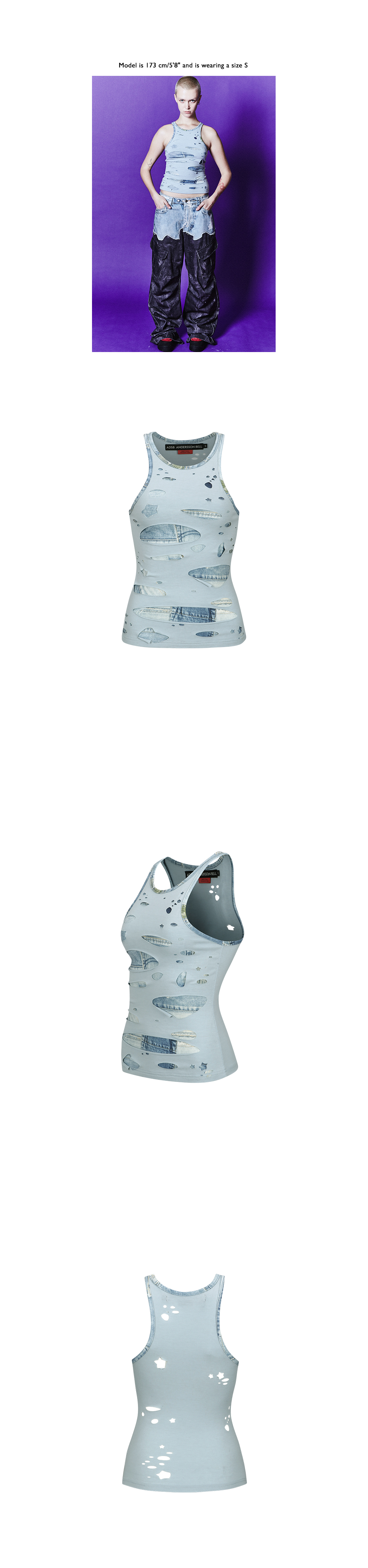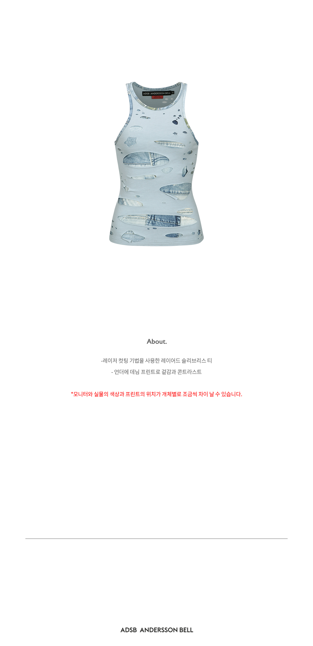ADSB 앤더슨벨 우먼 타티 레이저 컷아웃 슬리브리스 탑 라이트 블루
