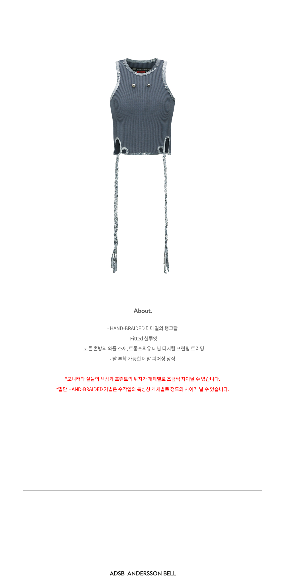 ADSB 앤더슨벨 에센셜 우먼 울라 핸드 브레이디드 와플 탱크 탑 차콜