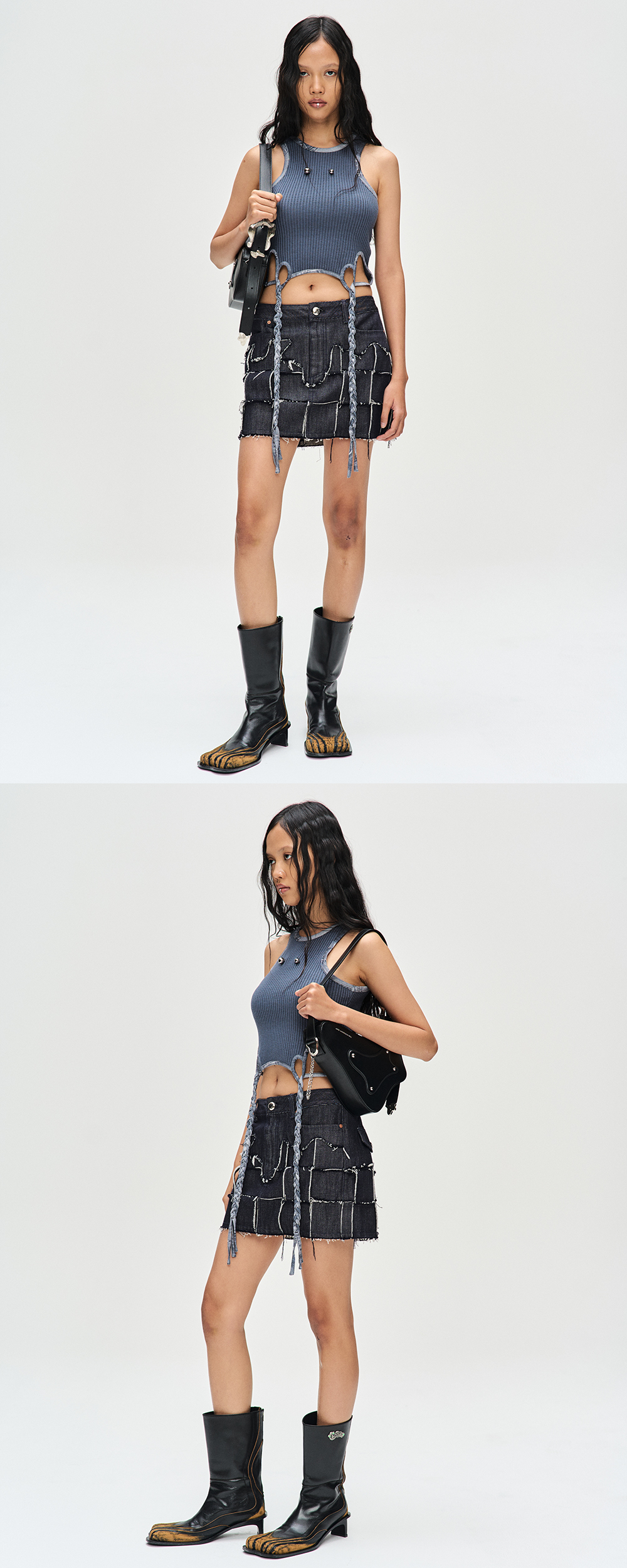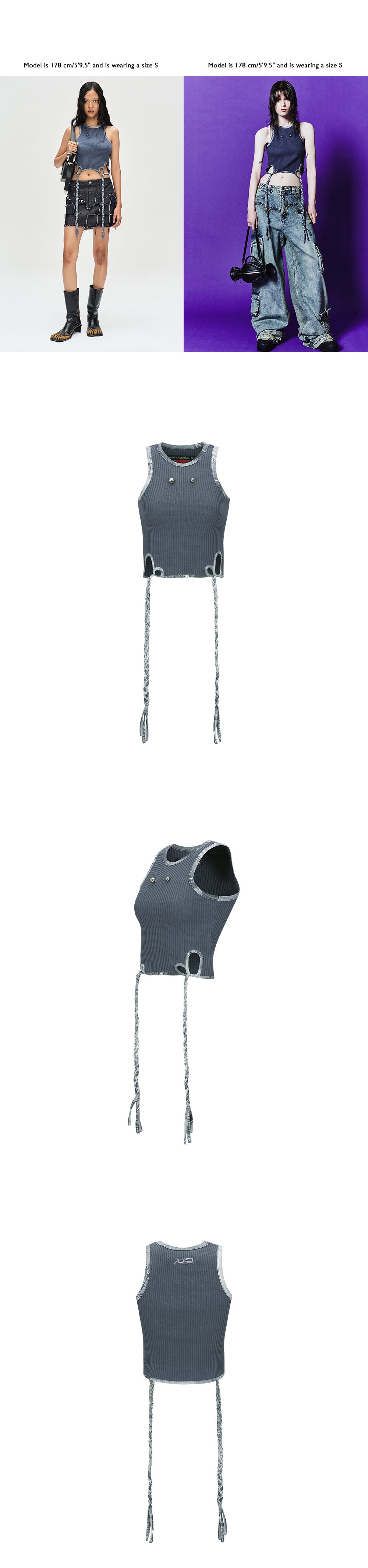 ADSB Andersson Bell Essential Women Ula Hand-Braided Waffle Tank Top Charcoal