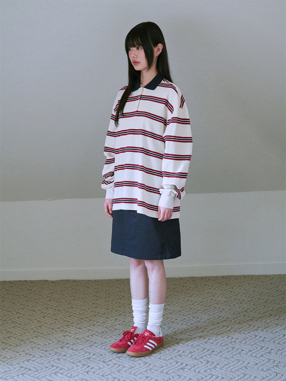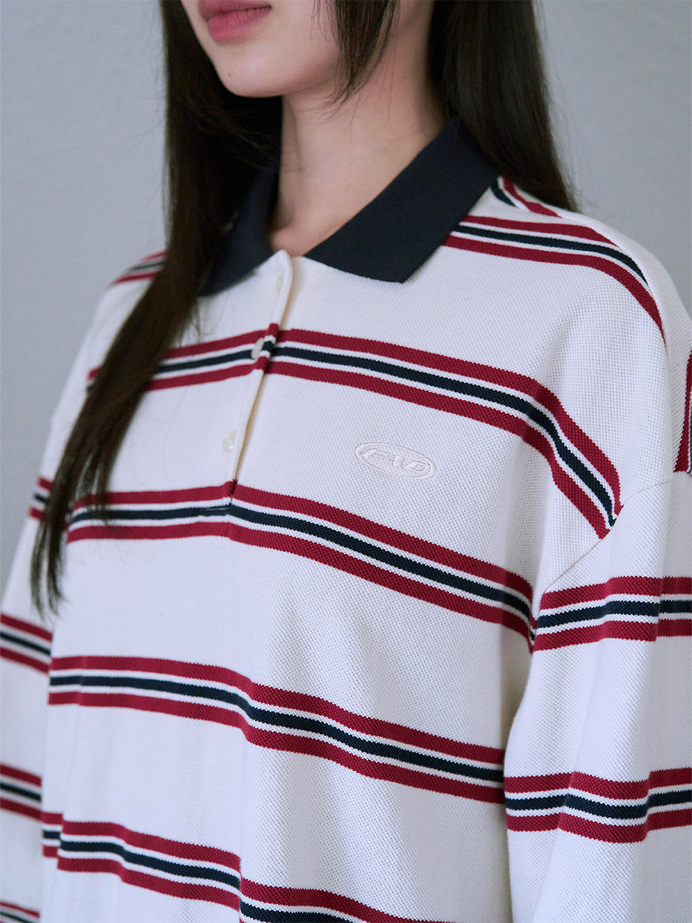 에프에이디 스트라이프 피케 셔츠 아이보리