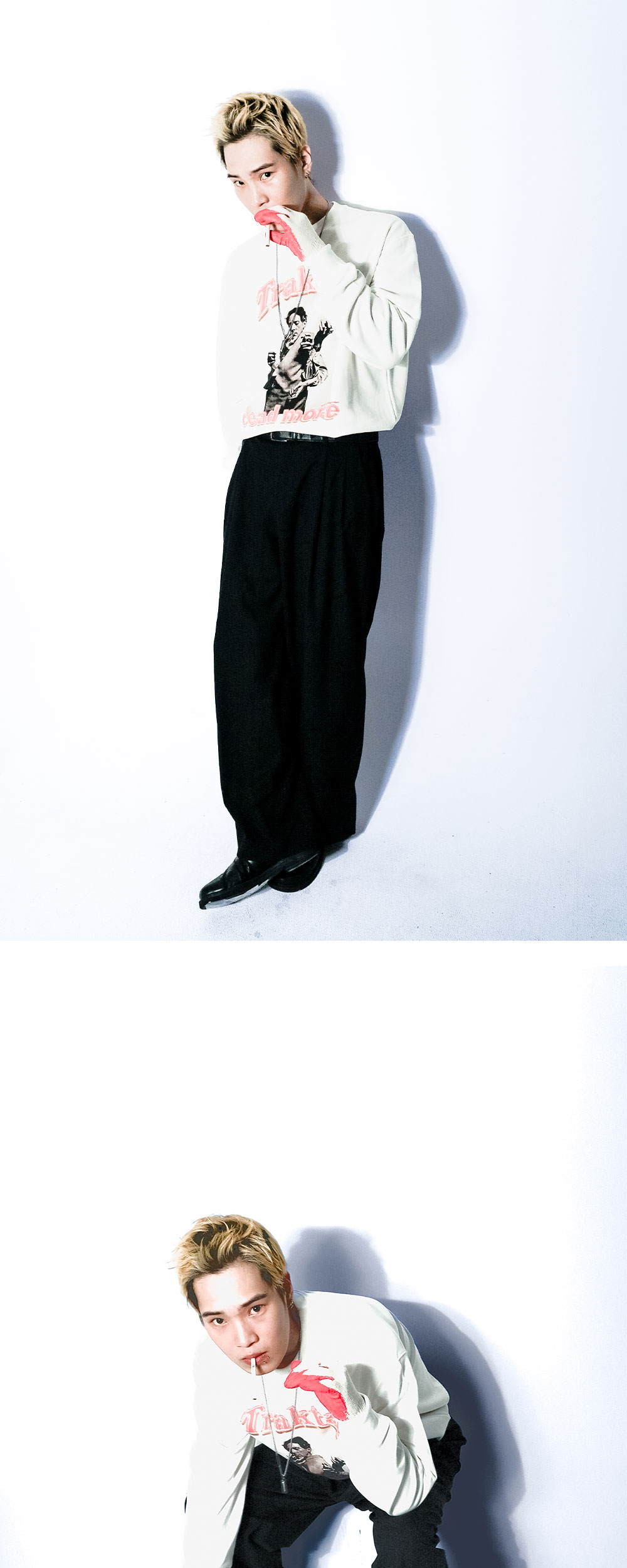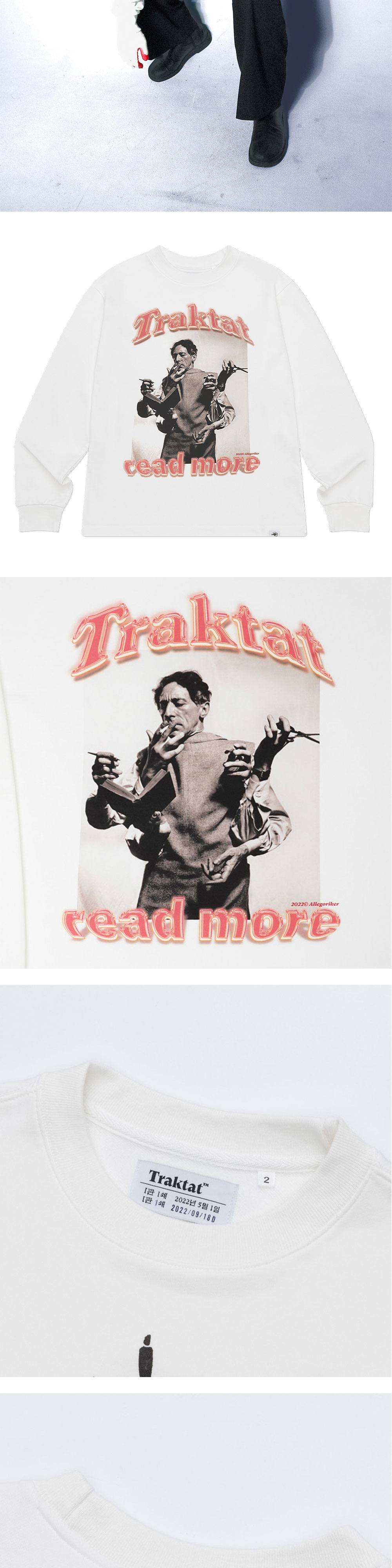 장 콕토는 열 아홉의 나이에 첫 시집 알라딘의 램프 La Lampe d'Aladin 를 통해 이름을 알리기 시작했습니다. 이후 러시아 발레단을 위해 'Parade', 'Le Boeuf sur le toit' 등 유명한 발레극을 썼고, 고전극을 현대적으로 재해석한 '오르페우스', '안티고네' 등의 작품은 여전히 높이 평가받습니다. 1930년부터는 <시인의 피Le sang d'un poète>를 시작으로 영화 제작에 본격적으로 뛰어들었습니다. 디자인에도 뛰어난 재능을 지닌 장 콕토틑 칸 영화제 황금종려상 로고를 디자인한 것으로도 널리 알려져 있습니다. 여섯 개의 손으로도 표현하기 어려운 그의 다재다능한 면모를 트락타트의 스웨트셔츠 위에 옮겼습니다. - 오버한 실루엣 - 세미 크롭 기장 - 부드럽고 도톰한 2합, 3단 테리원단 사용 - 바이오 효소 가공 및 완전침수워싱 - 뒷판 상단 자수 디테일 : 특수 실을 사용해 개체마다 색 배합이 조금씩 다릅니다.