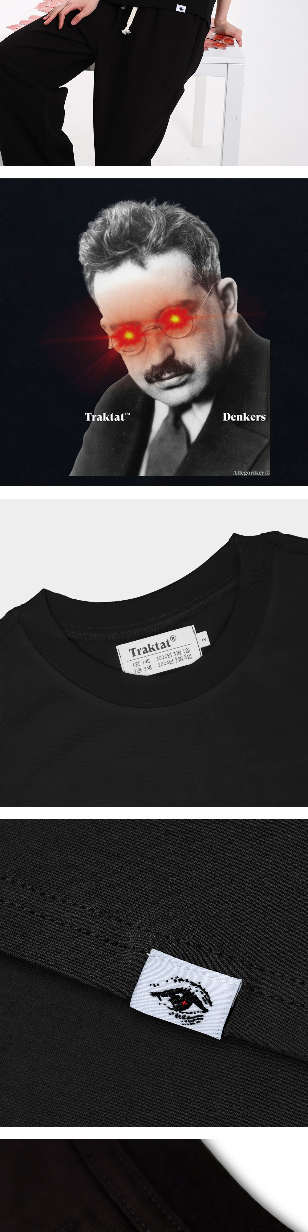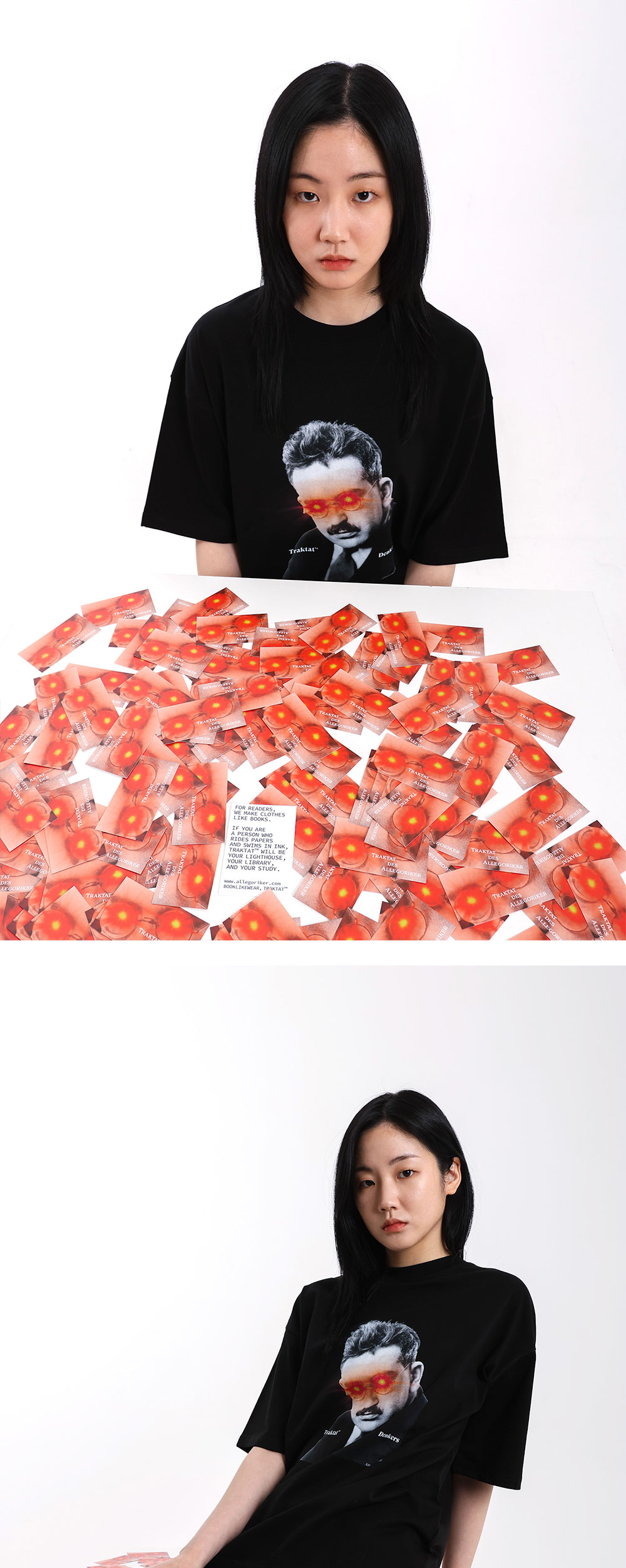 [6th Restock] Detail - 16수 면 100% - 실켓 & 바이오 효소 가공 - 뒷판 상단 자수 디테일 : 특수 실을 사용해 개체마다 색 배합이 조금씩 다릅니다. - 아웃사이드 바인딩(Outside binding) : 트락타트만의 특징적인 봉제 방식으로 어깨 라인을 체인스티치로 마감하였습니다. - 루즈 핏/드롭 숄더 - 1판 1쇄 메인 라벨 - Ex-Libris 케어라벨