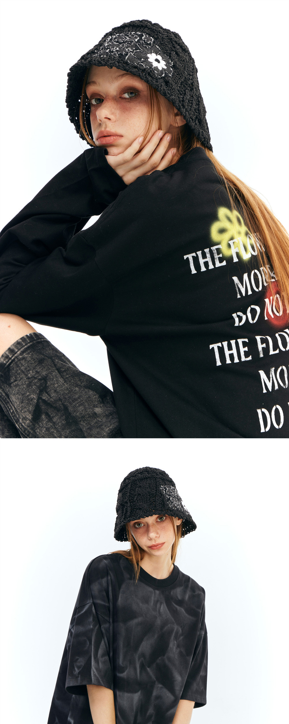 더그레이티스트 패치 플라워 버킷햇 블랙