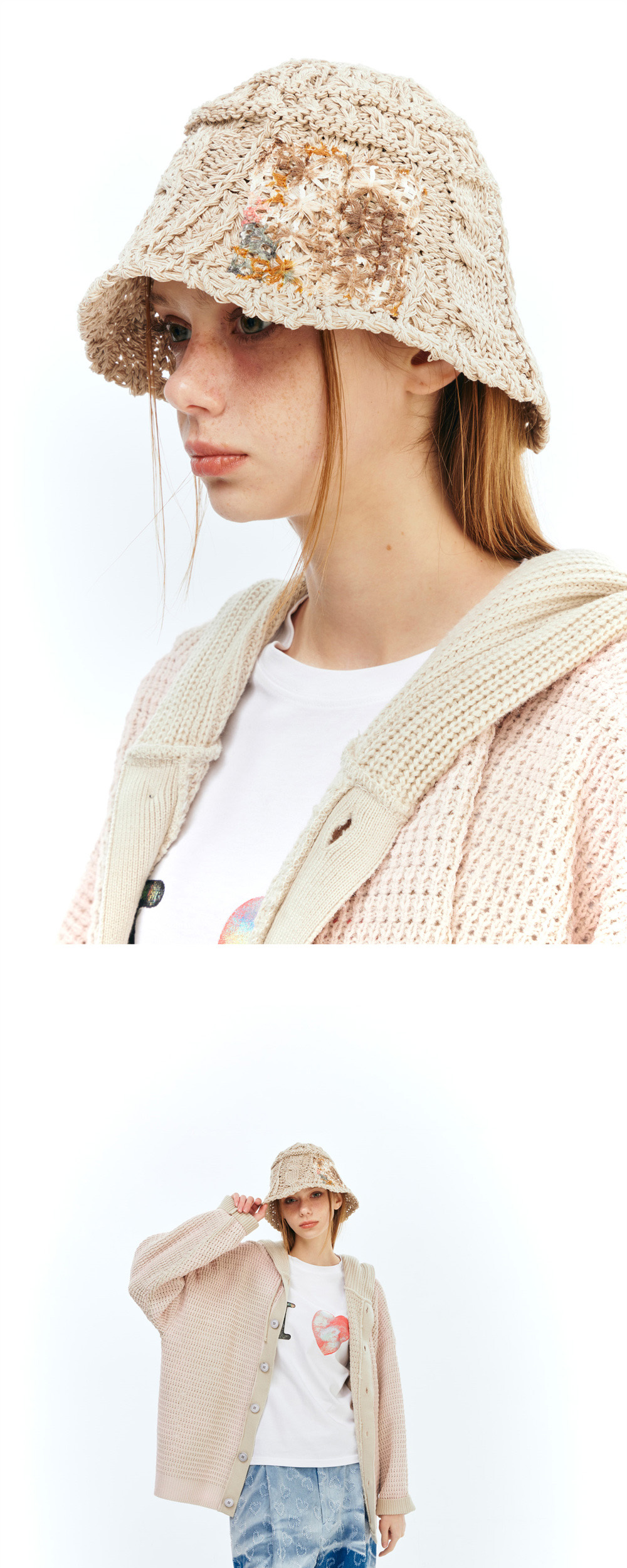 더그레이티스트 패치 플라워 버킷햇 베이지