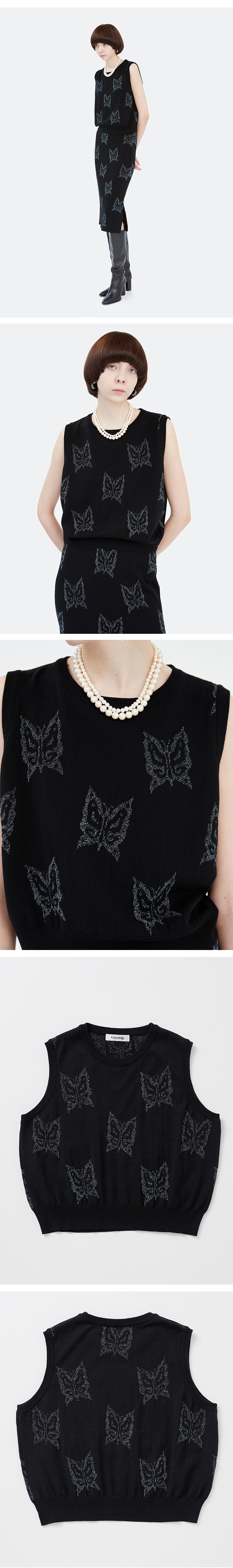 간절기에 입기 적합한 두께로 제작한 베스트입니다. 길지 않은 기장감의 스탠다드한 핏이며 나비 그래픽 부분을 메탈사로 제작하여 포인트를 주었습니다.