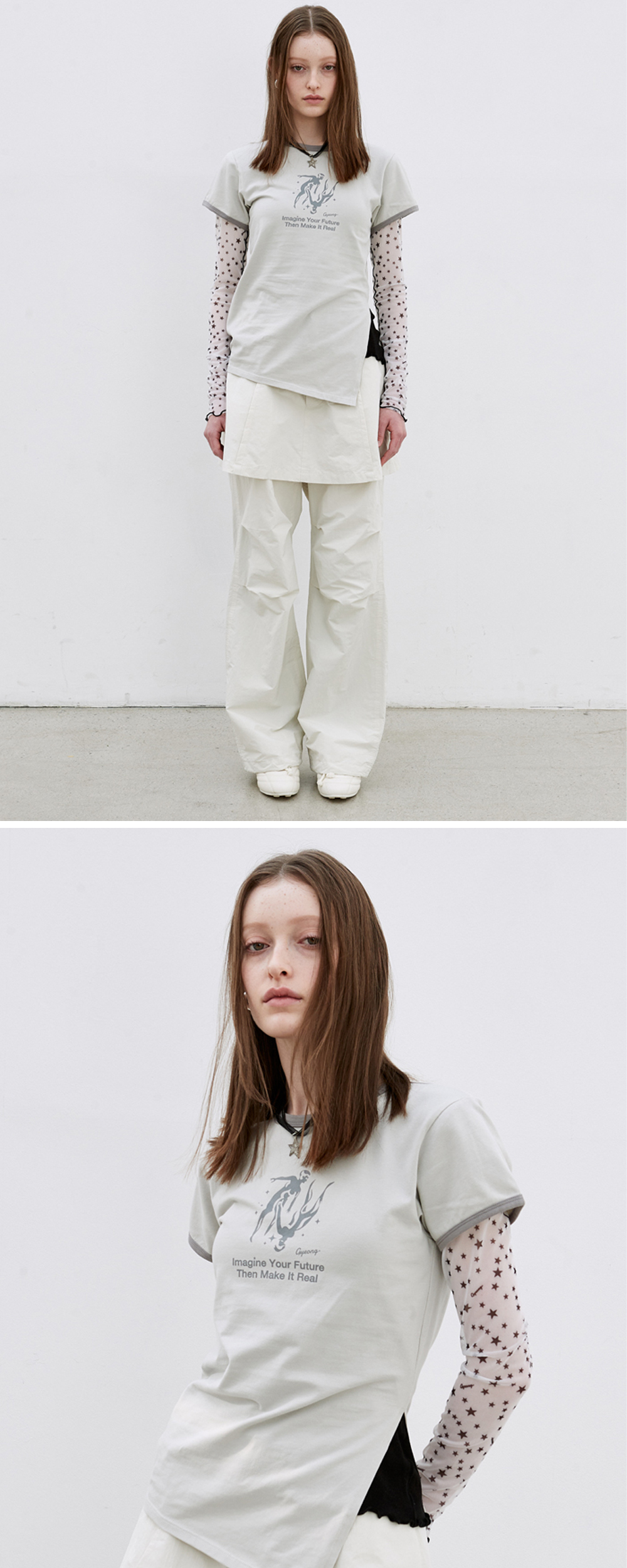Gyeong Imagine Graphic Slit Tee Khaki Beige