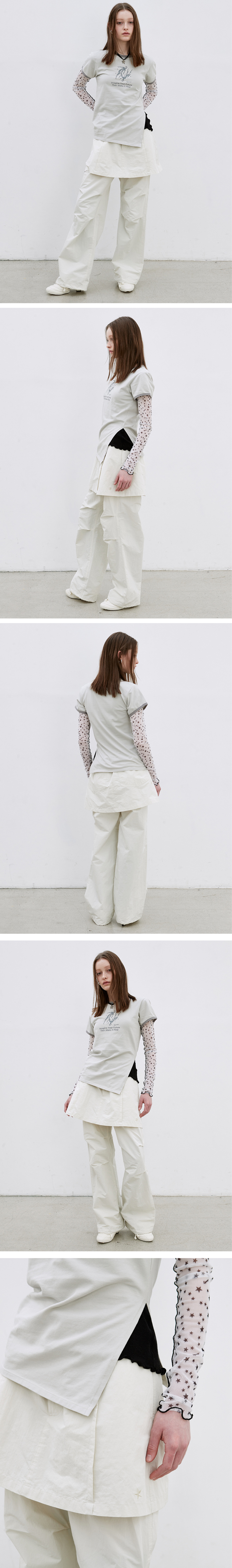스판 싱글로 제작되어 편안한 착용감의 티셔츠 - 전면 경 그래픽 프린트 디자인 - 몸판 사이드에 슬릿 디테일 - 전면 사선으로 떨어지는 몸판 헴 라인 - 가먼트 워싱 가공 - 적당한 기장감에 타이트한 실루엣