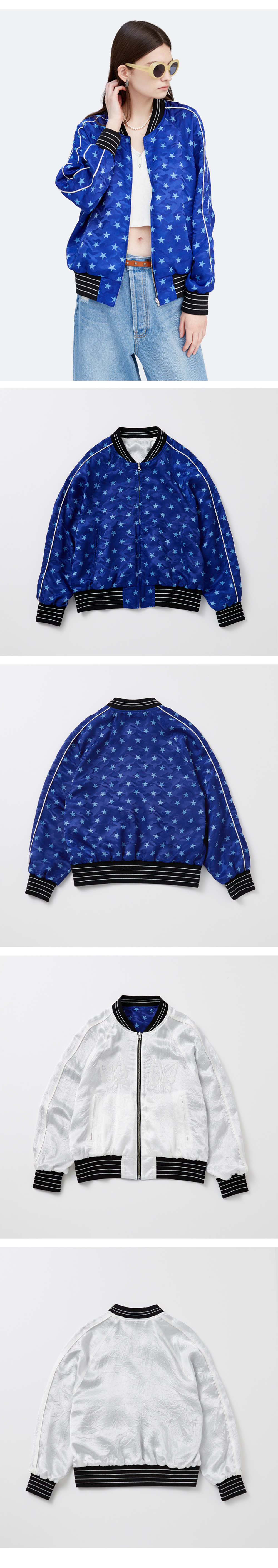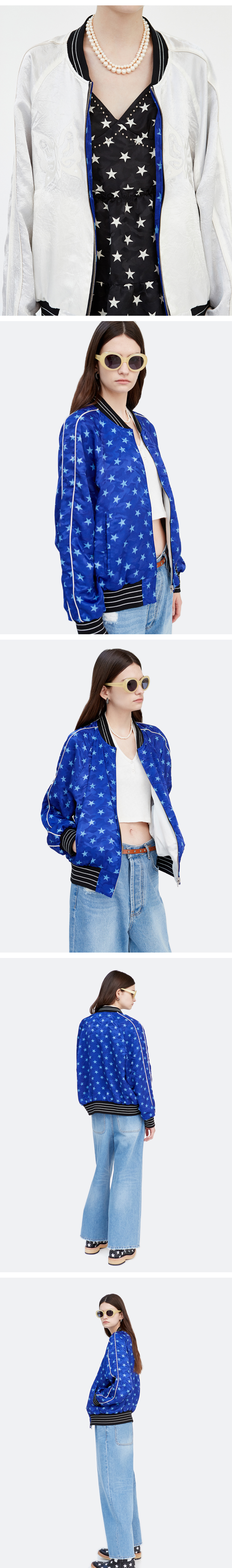 경 리버시블 스타 프린트 봄버 블루/화이트