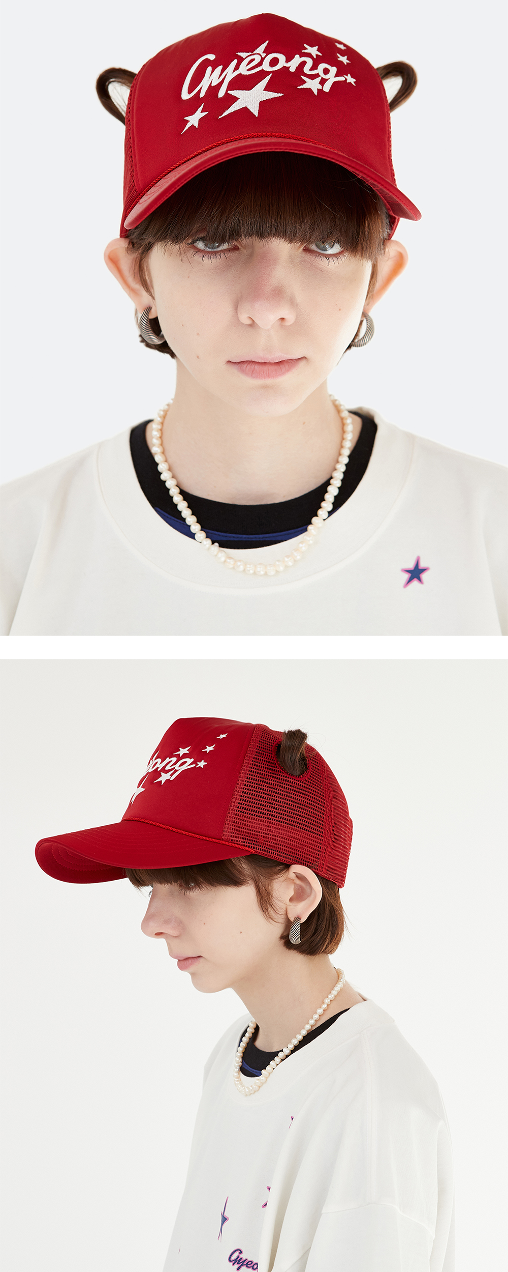 Gyeong Twin Tails Trucker Cap Red