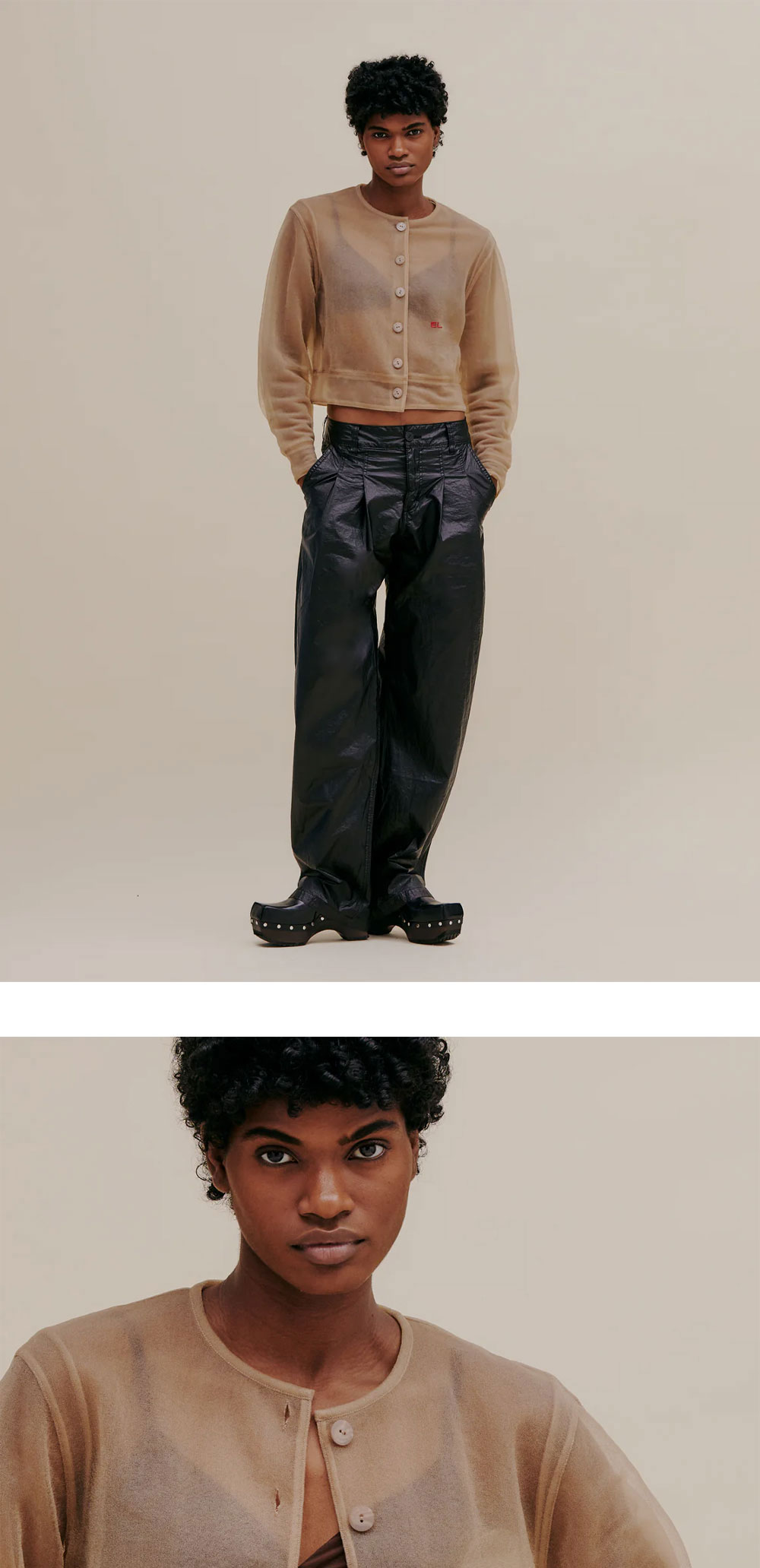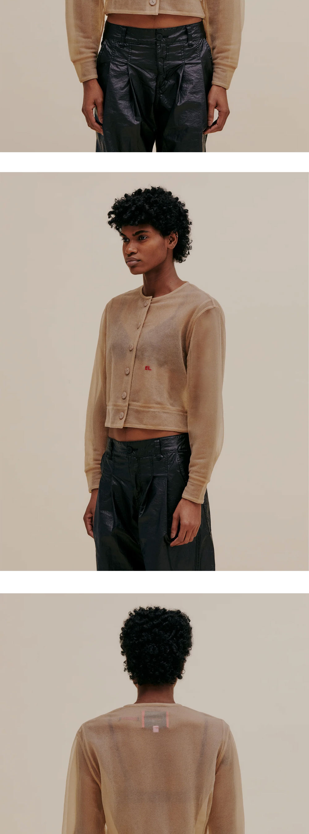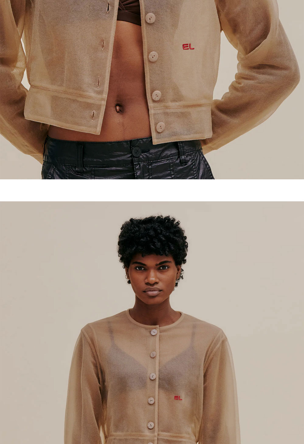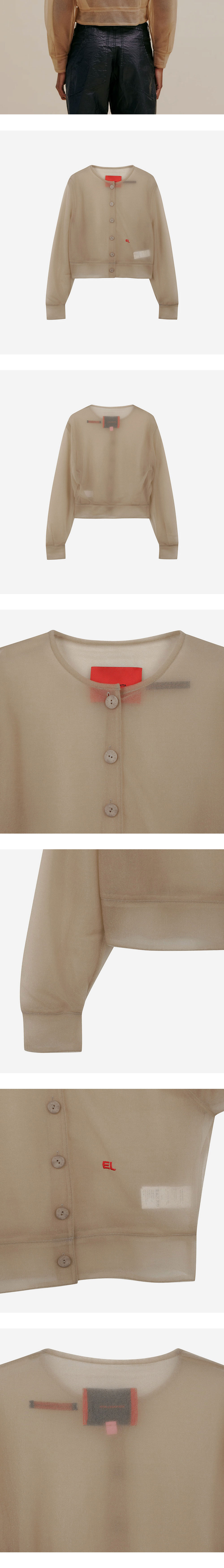 에크하우스 라타의 둥근 형태의 오버사이즈 핏 재킷입니다. 이탈리아산 스폰지 원사를 사용한 독특한 소재감이 특징입니다. - 전면의 단추 디테일 - 왼쪽 상단의 EL 로고 자수 - 더블 레이어로 제작 * 모델 착용 사이즈: S