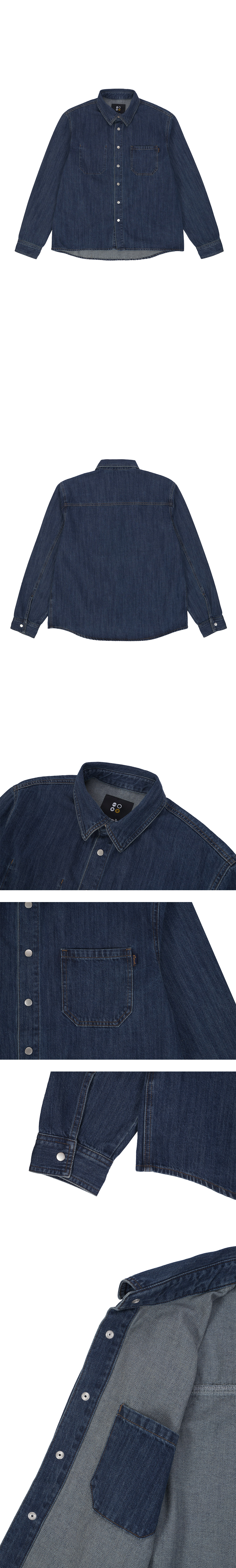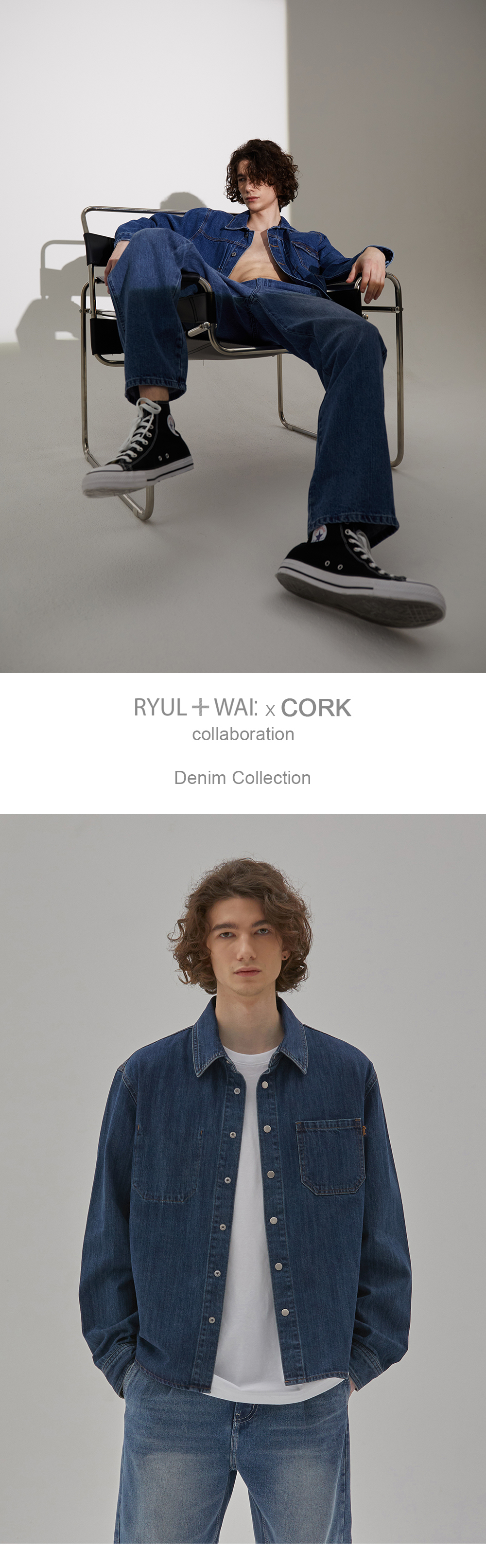-CORK DENIM COLLABORATION COLLECTION 상품입니다. 세미오버핏의 실루엣의 데님 셔츠입니다. 왼쪽은 기본포켓, 오른쪽은 내부포켓(겉스티치)으로 데일리 코디에 포인트를 주었습니다. 바닥감을 살린 스톤워싱으로 데님 본연의 빈티지한 느낌에 충실한 스타일입니다. 여유잇는 핏과 자연스러운 컬러감으로 다양한 스타일링이 가능한 아이템입니다.