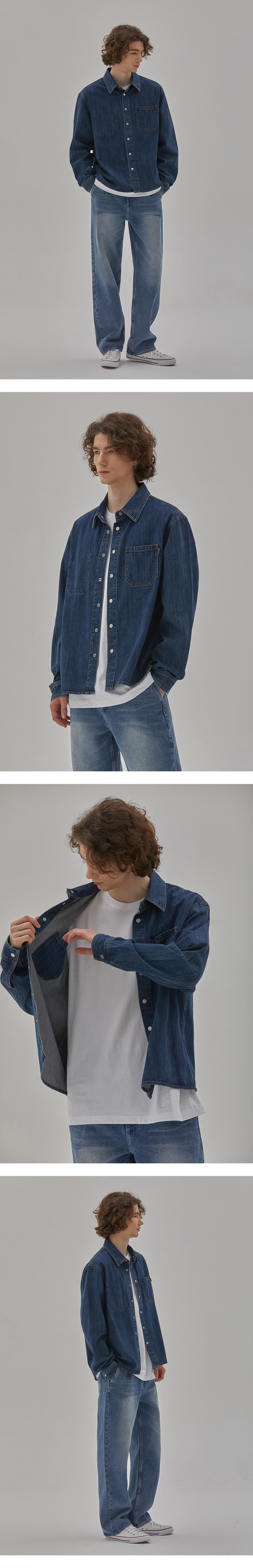 률앤와이 데님 세미 오버핏 스톤 워싱 셔켓 인디고